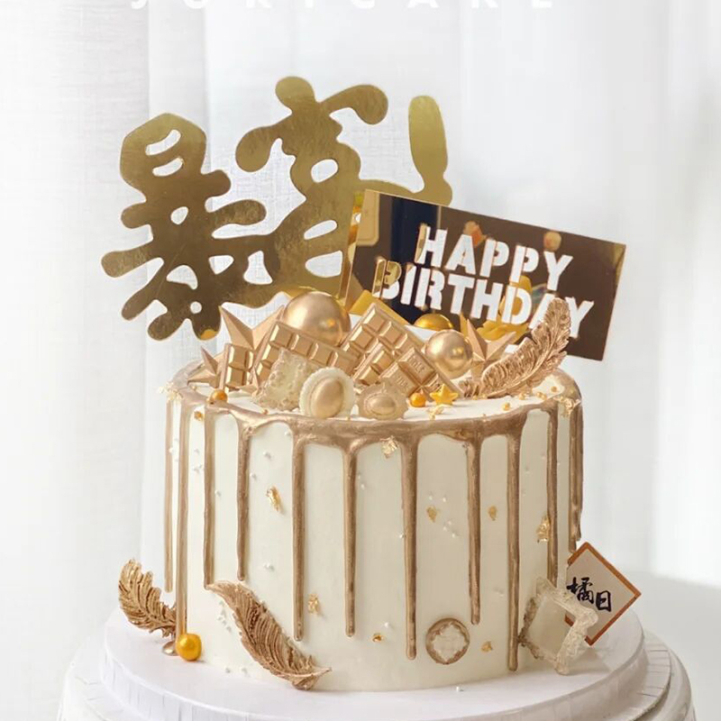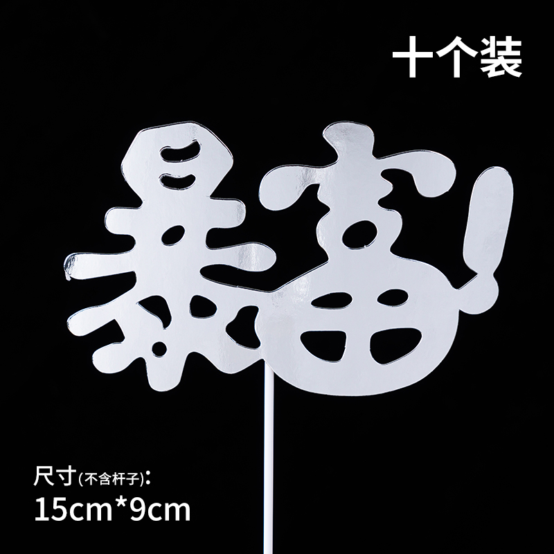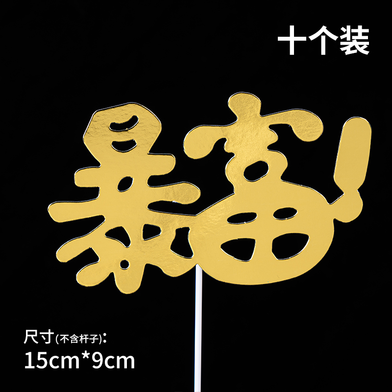 创意生日蛋糕插牌金色暴富暴美爆帅暴瘦装饰插件派对甜品台摆件