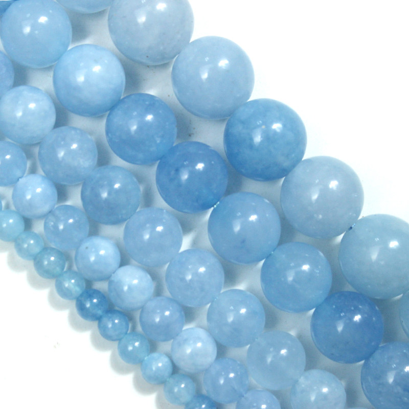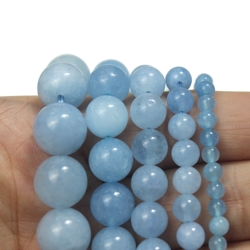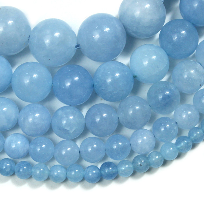 海蓝宝冰种晶透散珠子蓝色玉髓珠子水晶手串手链diy手工串珠圆珠