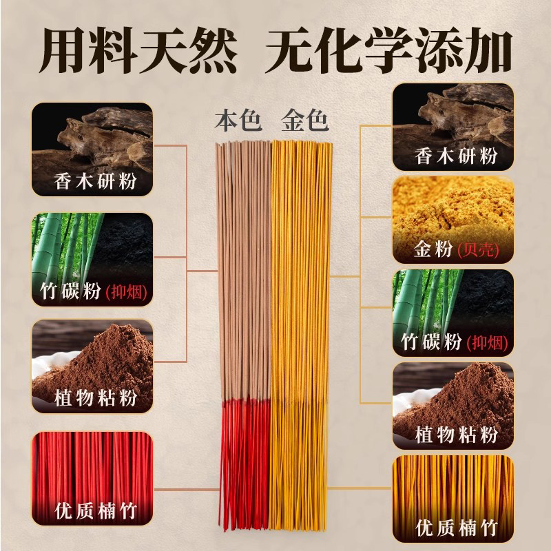 无烟香檀香金香观音财神招财供佛香家用室内上香天然竹签礼佛供香