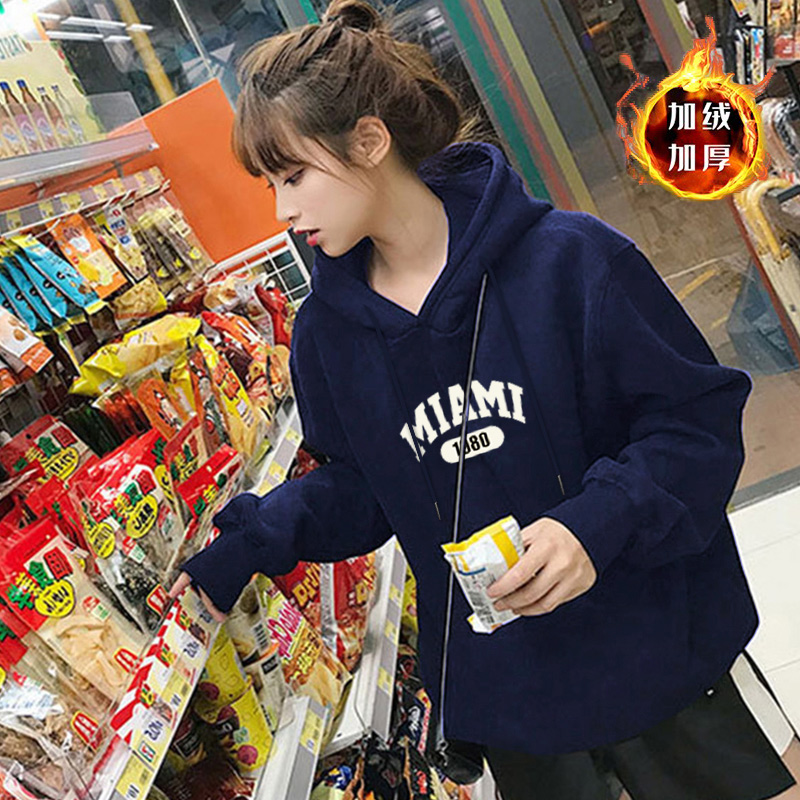 韩版白色连帽加绒小个子卫衣女潮