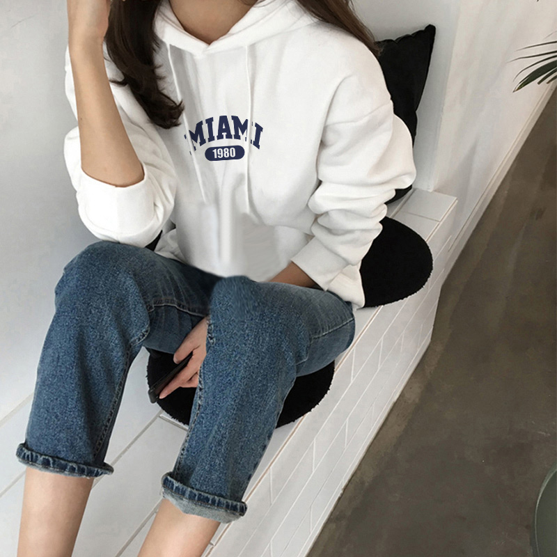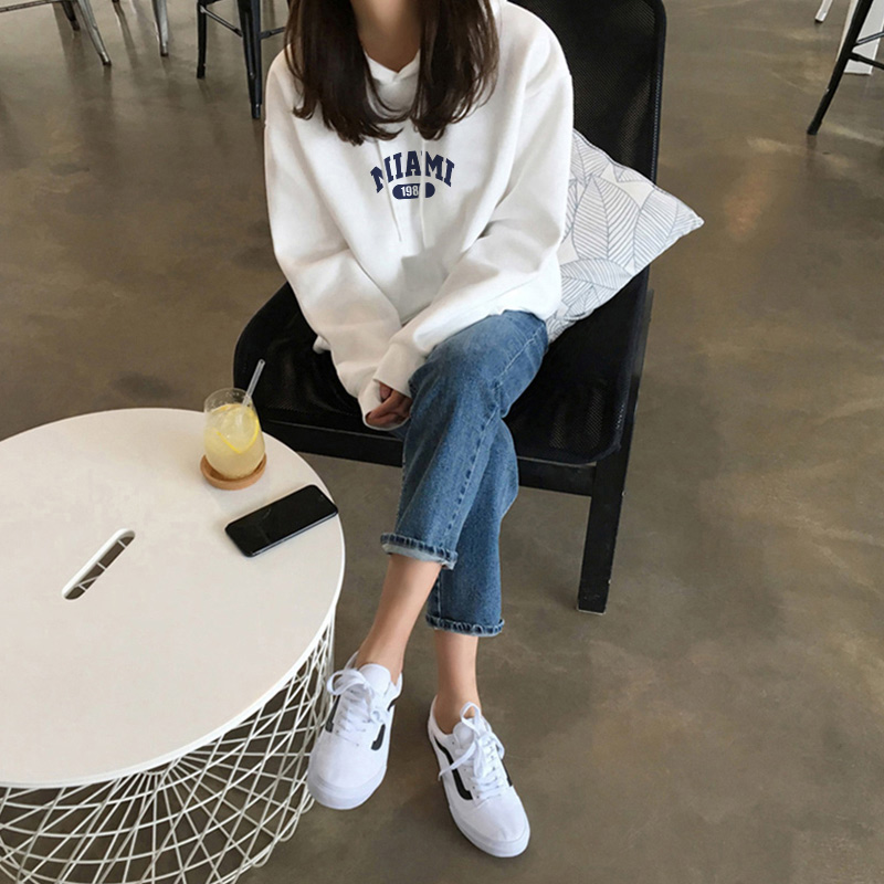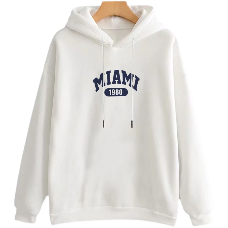 白色连帽卫衣女加绒2025秋冬款新款宽松简约外套潮小个子韩版上衣
