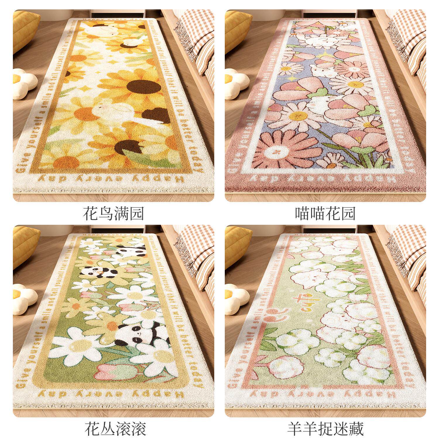 卧室床边地毯轻奢高级感长条加厚主卧羊绒地垫女孩房间儿童床边毯