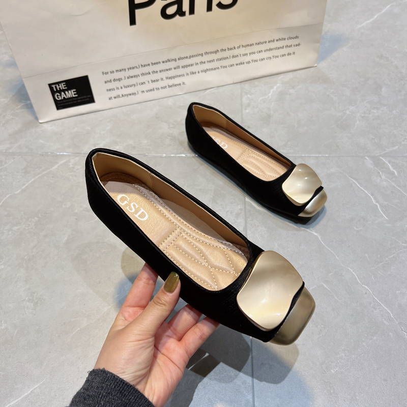 复古方头平底单鞋女奶奶鞋2025春秋新款女鞋配裙子瓢鞋软底豆豆鞋