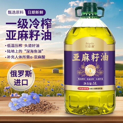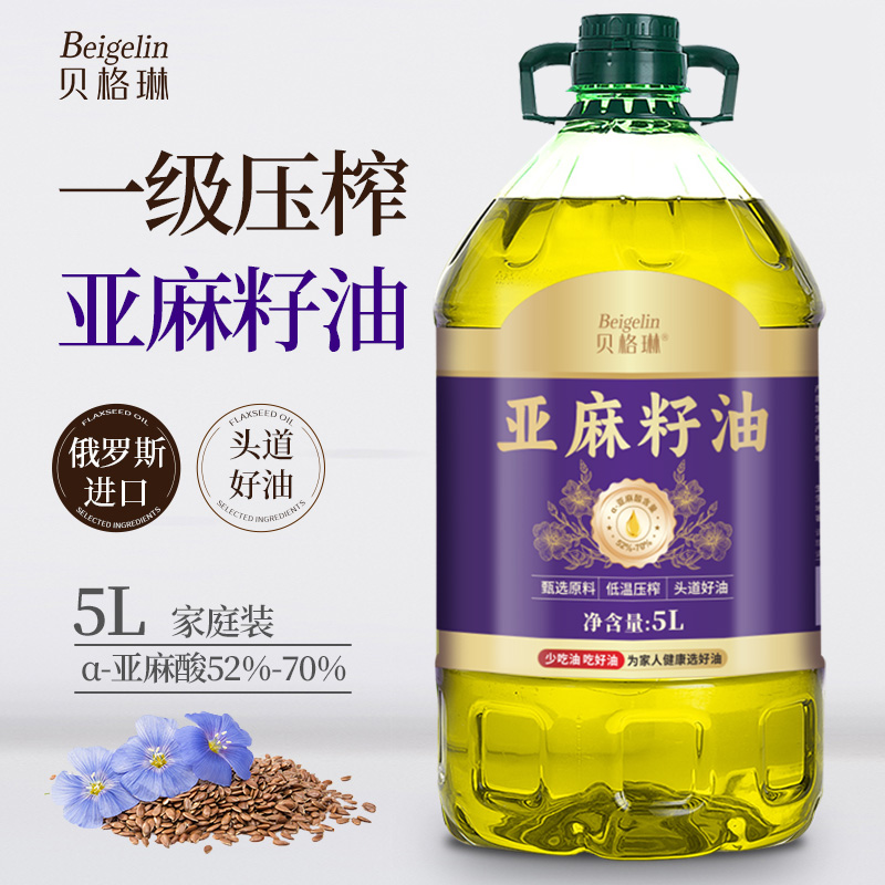 俄罗斯进口纯亚麻籽油5L一级冷榨胡麻油食用油亚麻酸炒菜官方正品
