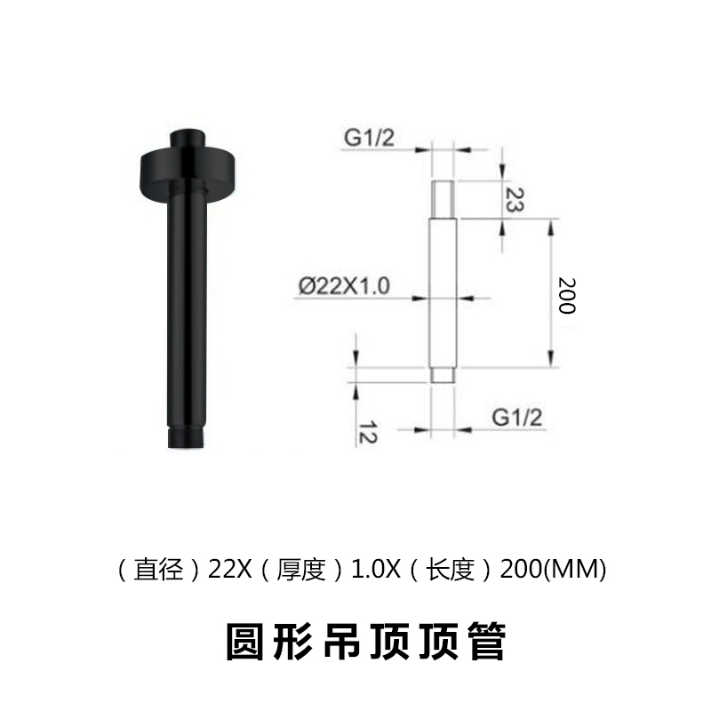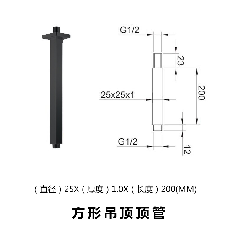 黑色全铜暗装花洒入墙管连接杆 顶喷花洒入墙杆子 吊顶杆方形圆形