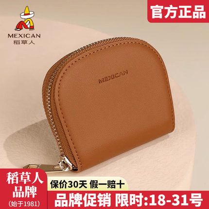 稻草人真皮钱包女2025新款可爱多功能卡包迷你小巧日系短款零钱包