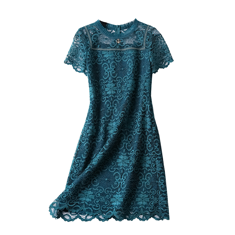紫米衣坊改良旗袍裙子女夏季中年妈妈洋气新款遮肚子蕾丝连衣裙