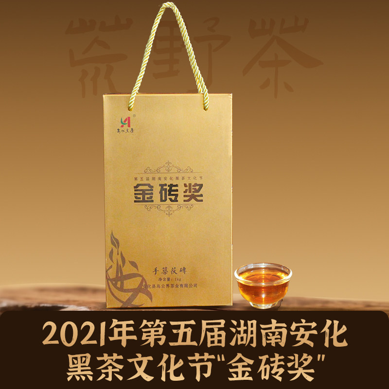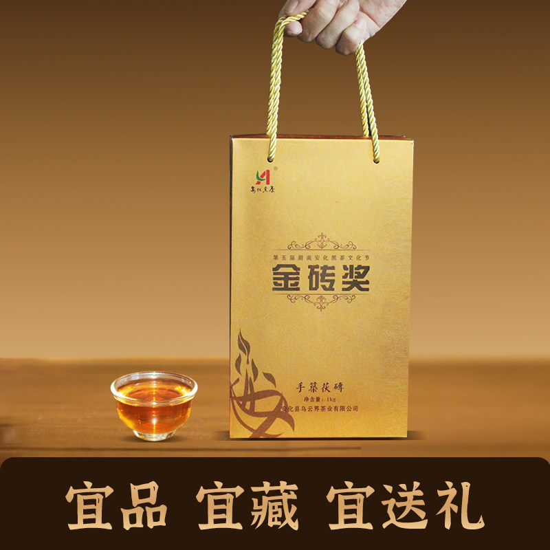 安化黑茶茯砖茶官方旗舰店正品2015年荒野嫩叶金花茯砖1KG礼盒装