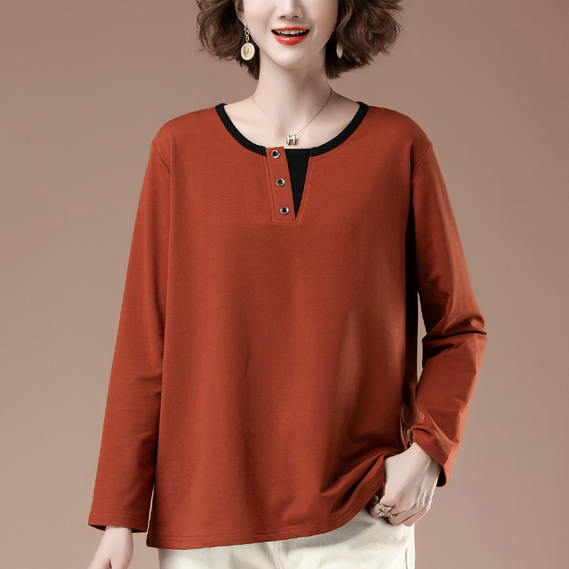 加肥加大码长袖t恤女秋冬中老年妈妈纯棉加绒加厚显瘦体恤打底衫