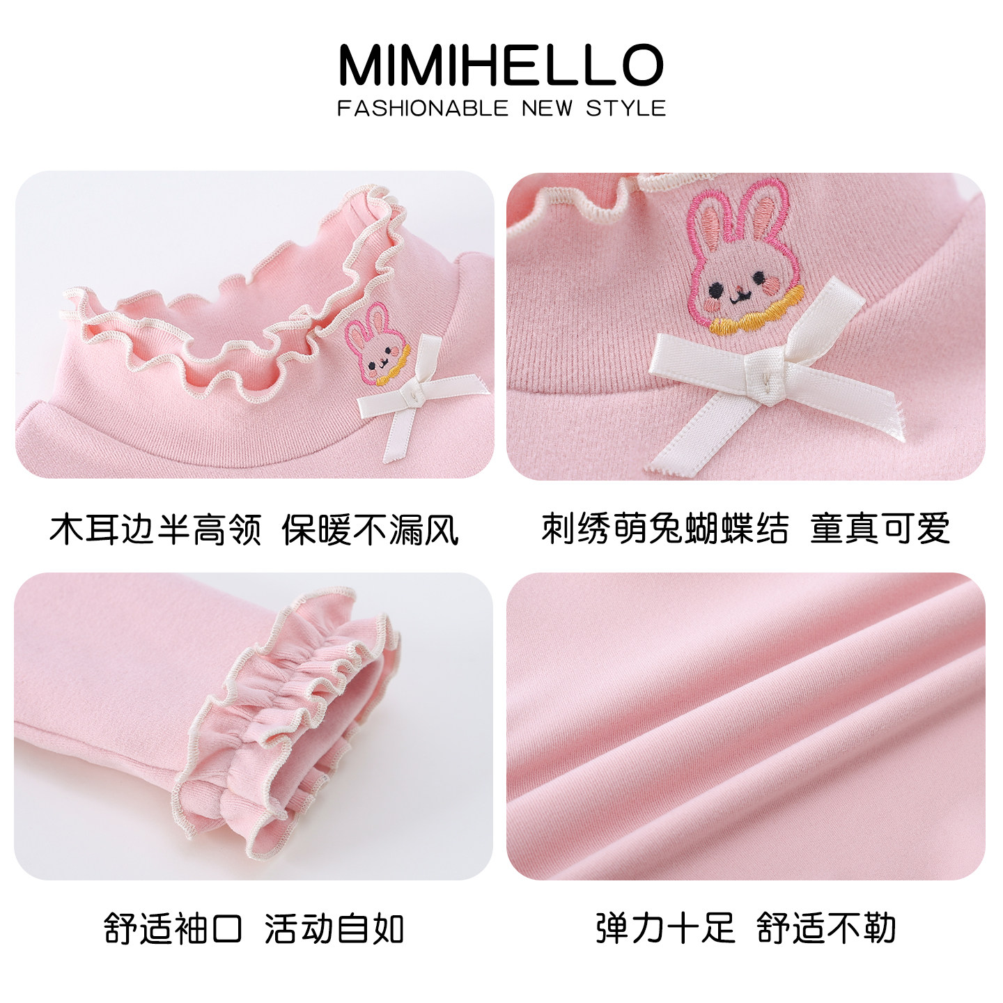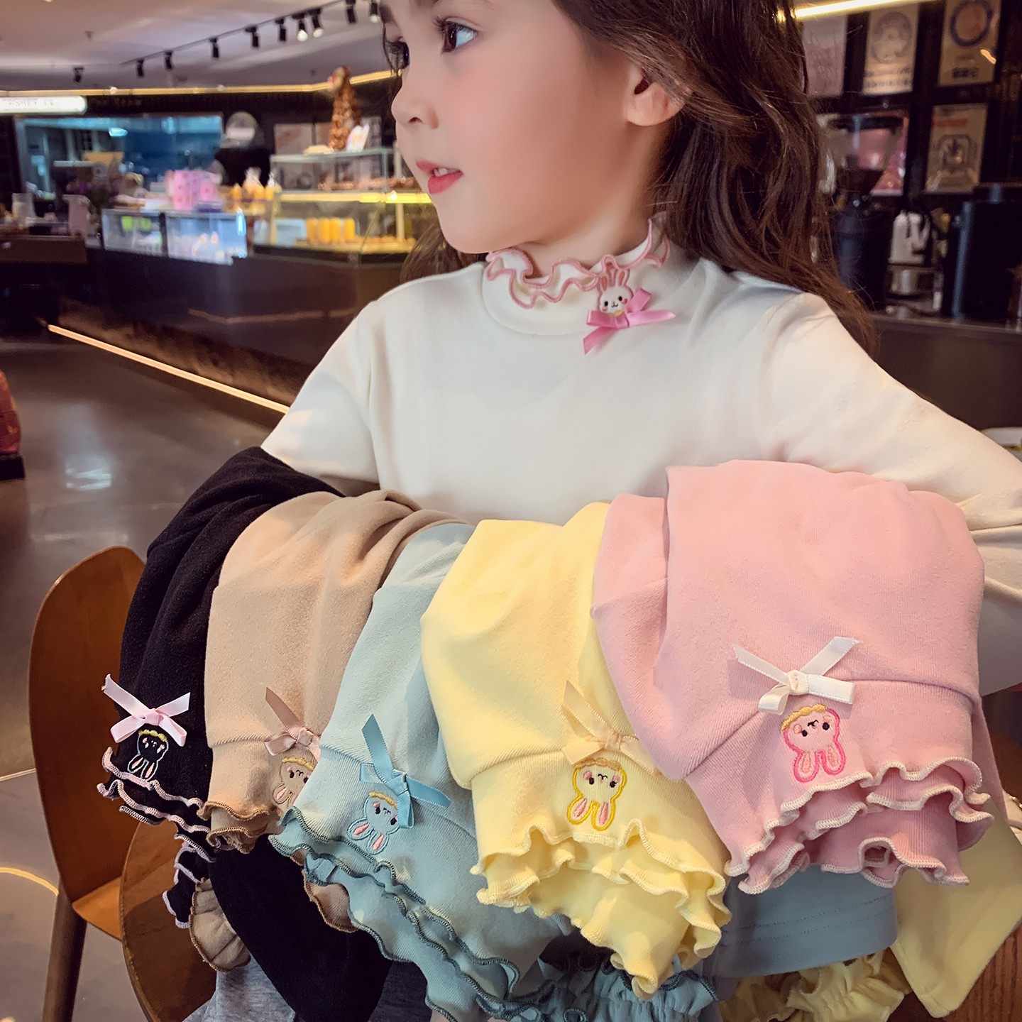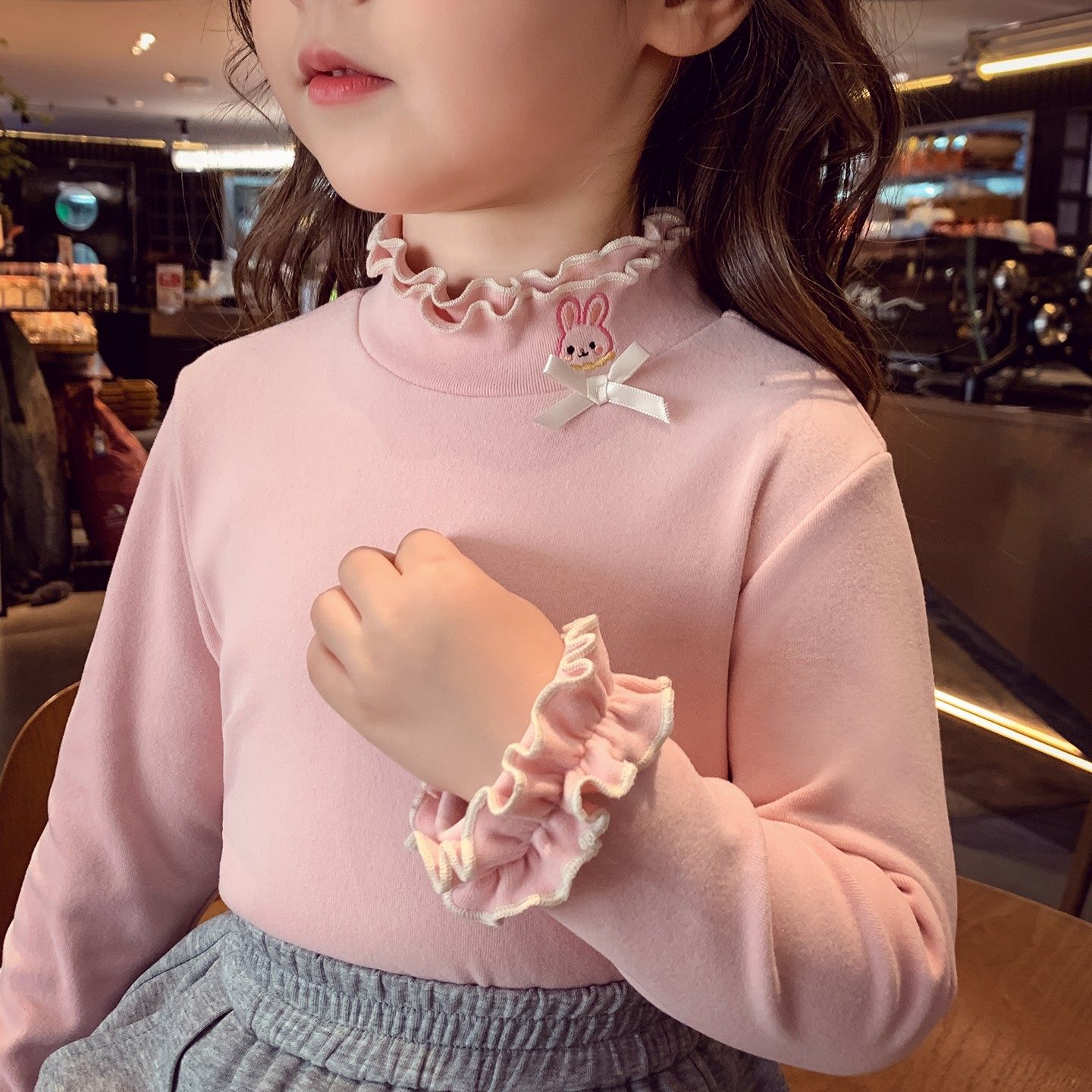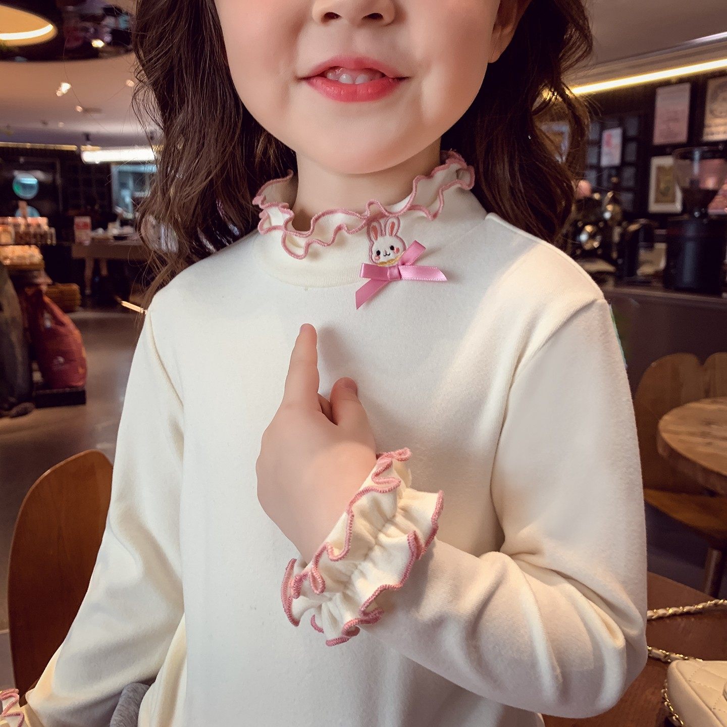 女童打底衫秋冬2025新款儿童韩版木耳花边中高领内搭女孩长袖上衣