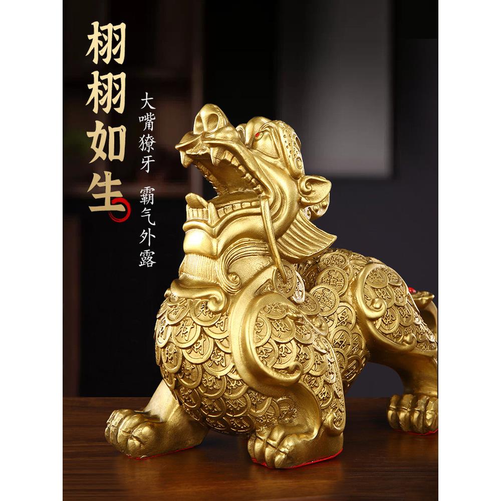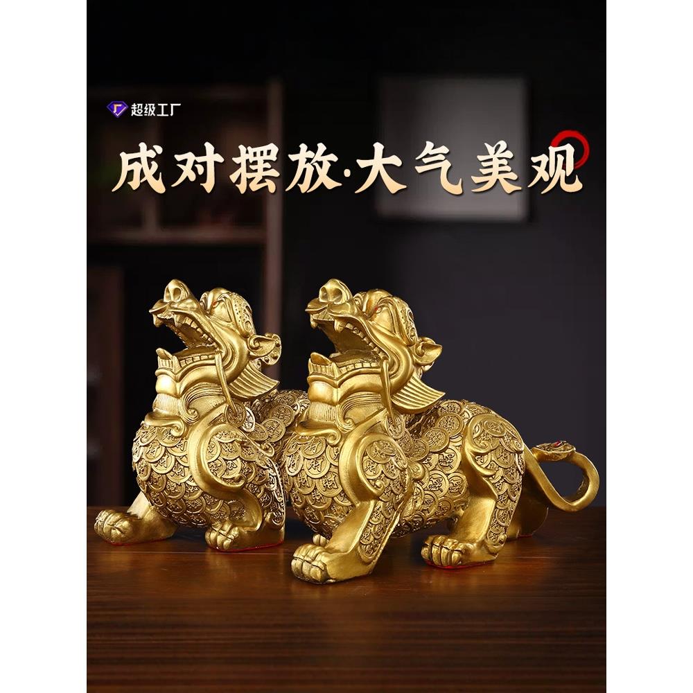 黄铜貔貅摆件公母一对纯铜招财镇宅客厅办公室开业礼品八方来财宝
