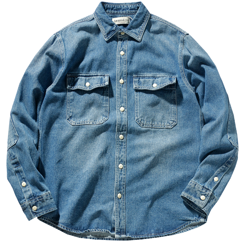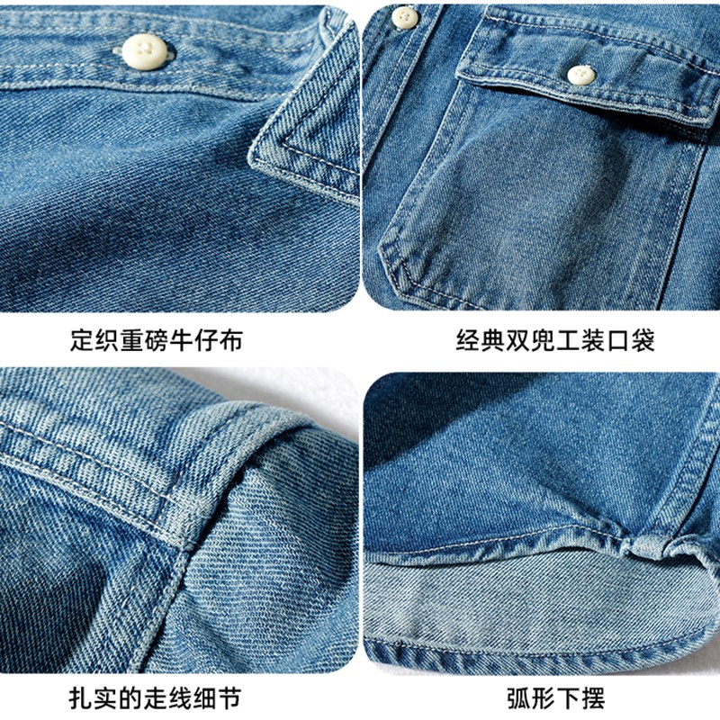 牛仔衬衫立领百搭工装衬衣男长袖秋冬厚款重磅复古牛仔外套夹克男