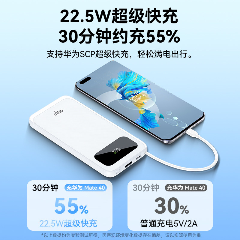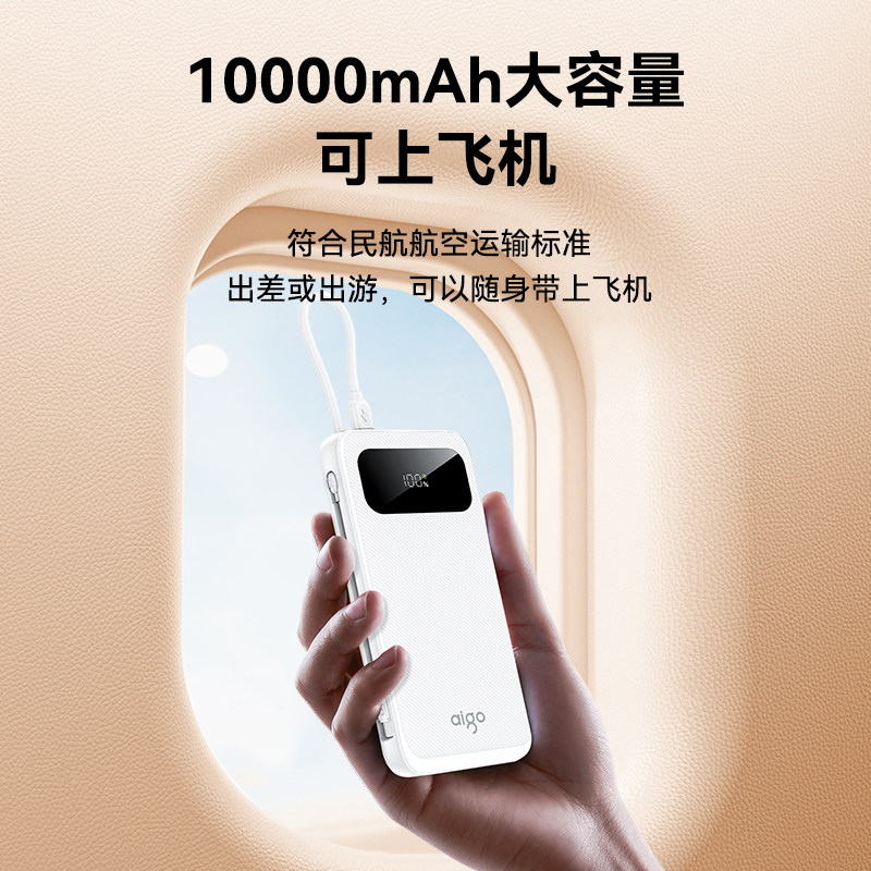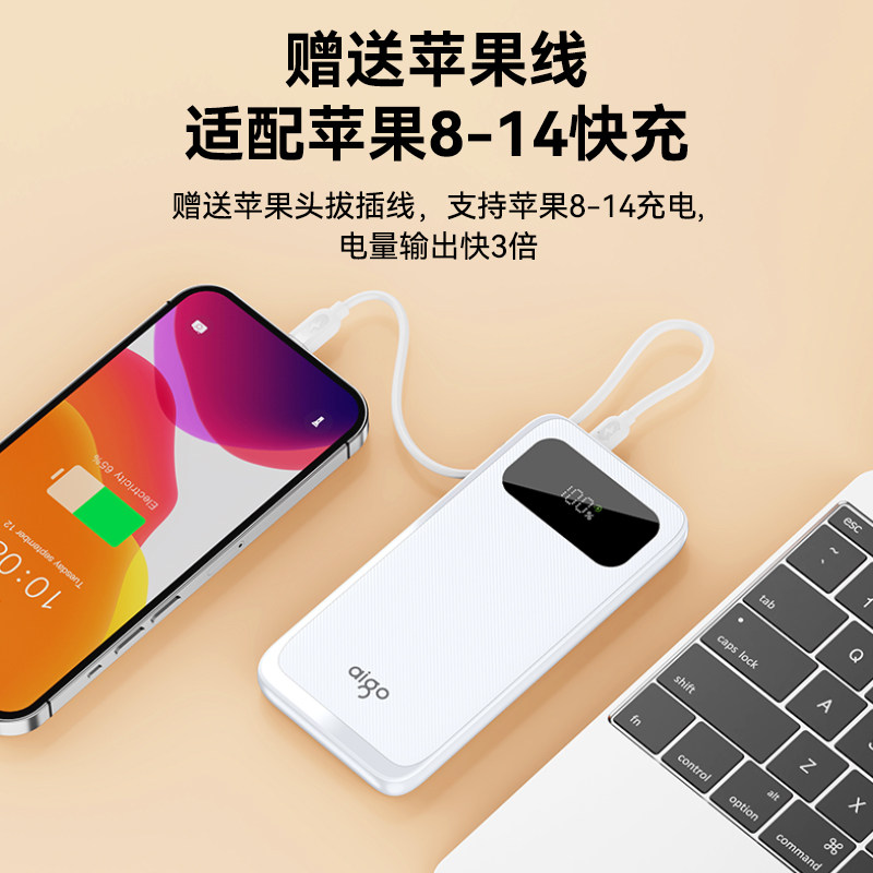 爱国者22.5W自带线充电宝双线10000毫安Type-c双线快充超薄小巧便携可爱女移动电源可上飞机适用安卓苹果手机