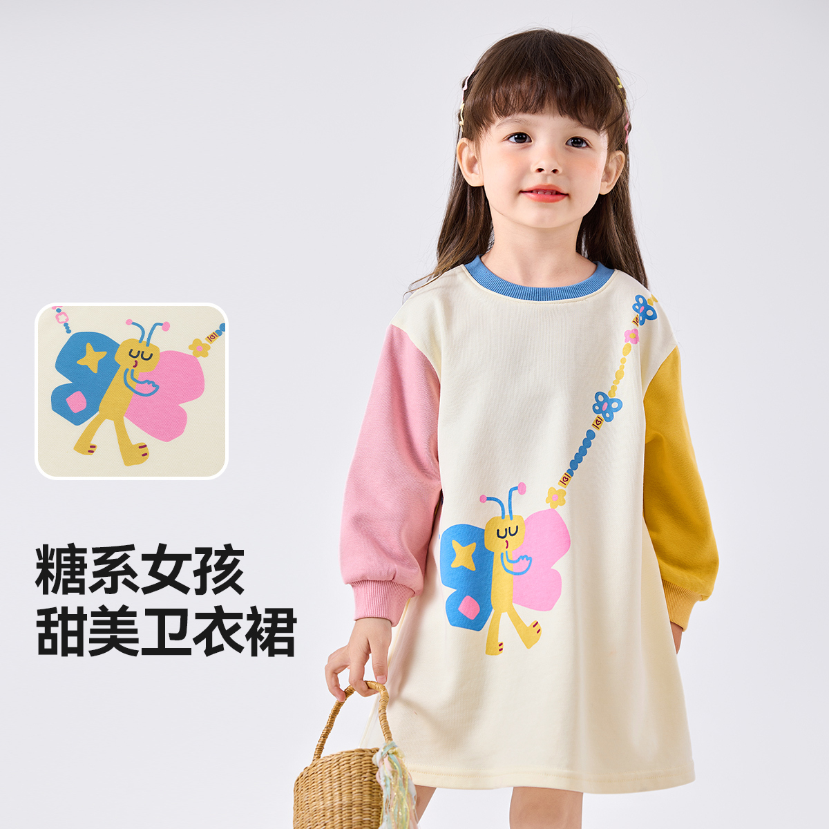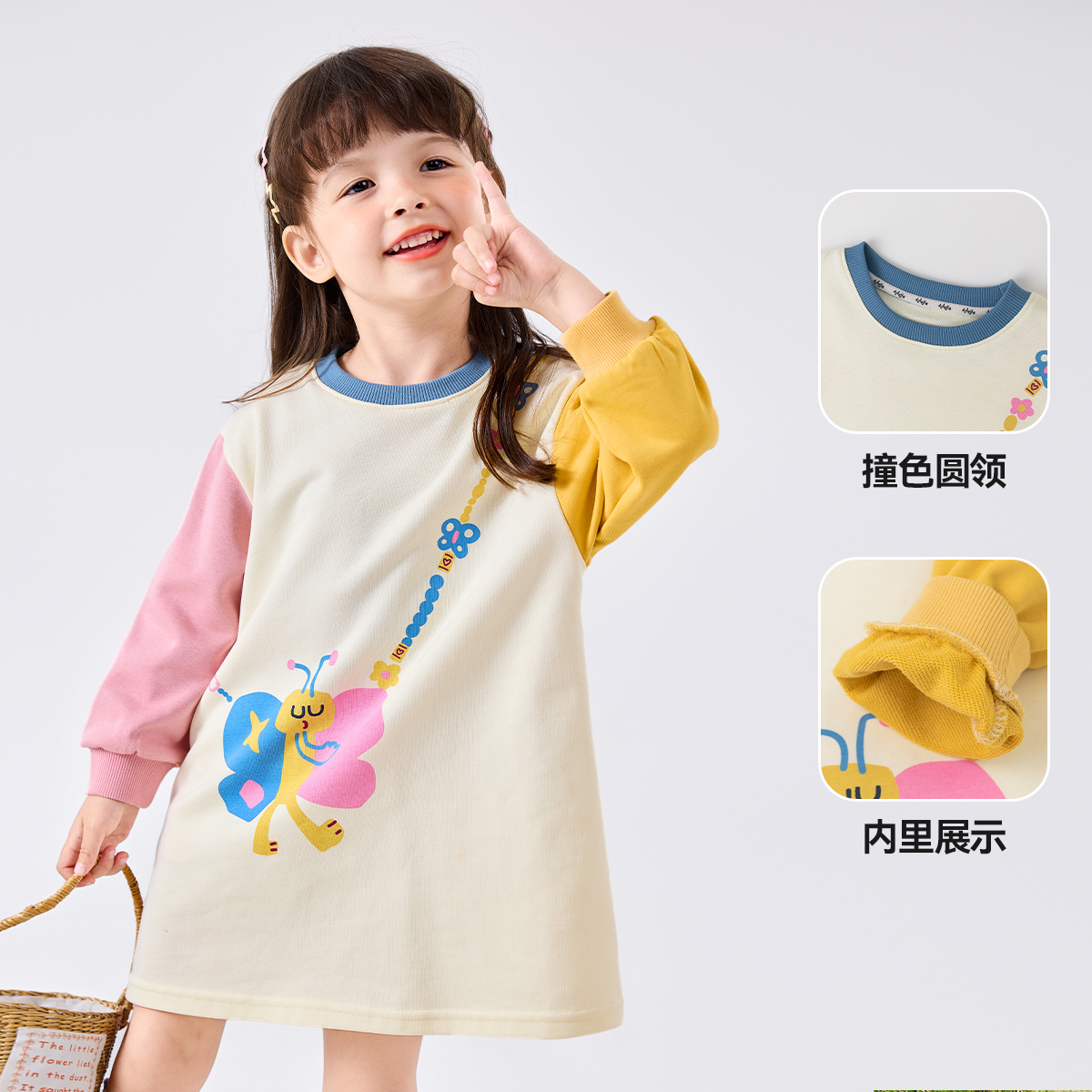 【糖系女孩】嘟嘟家女童撞色裙子春秋女宝甜美连衣裙宝宝卫衣裙潮
