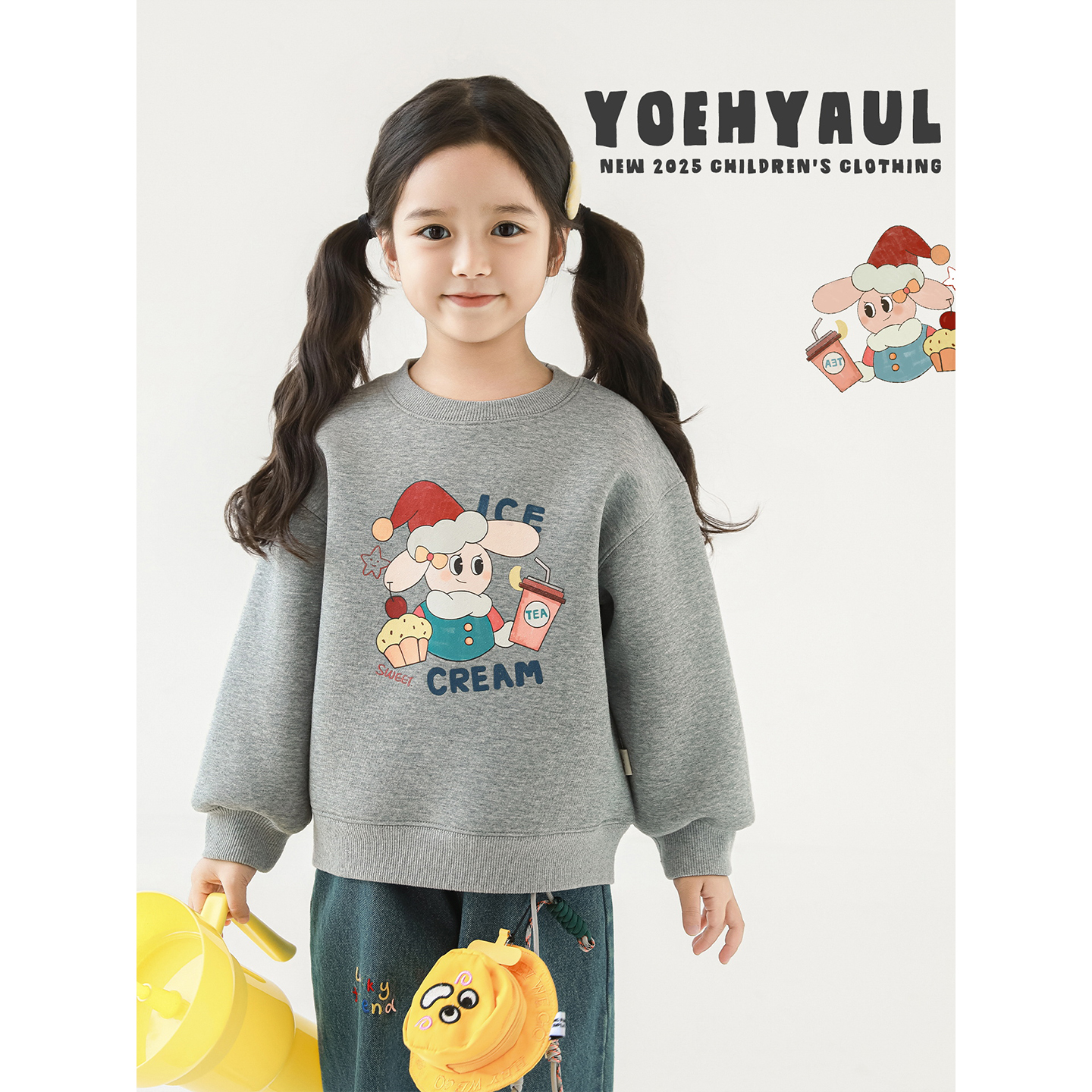 幼悠女童落肩百搭云朵卫衣2025秋冬萌趣可爱轻盈保暖宽松休闲上衣