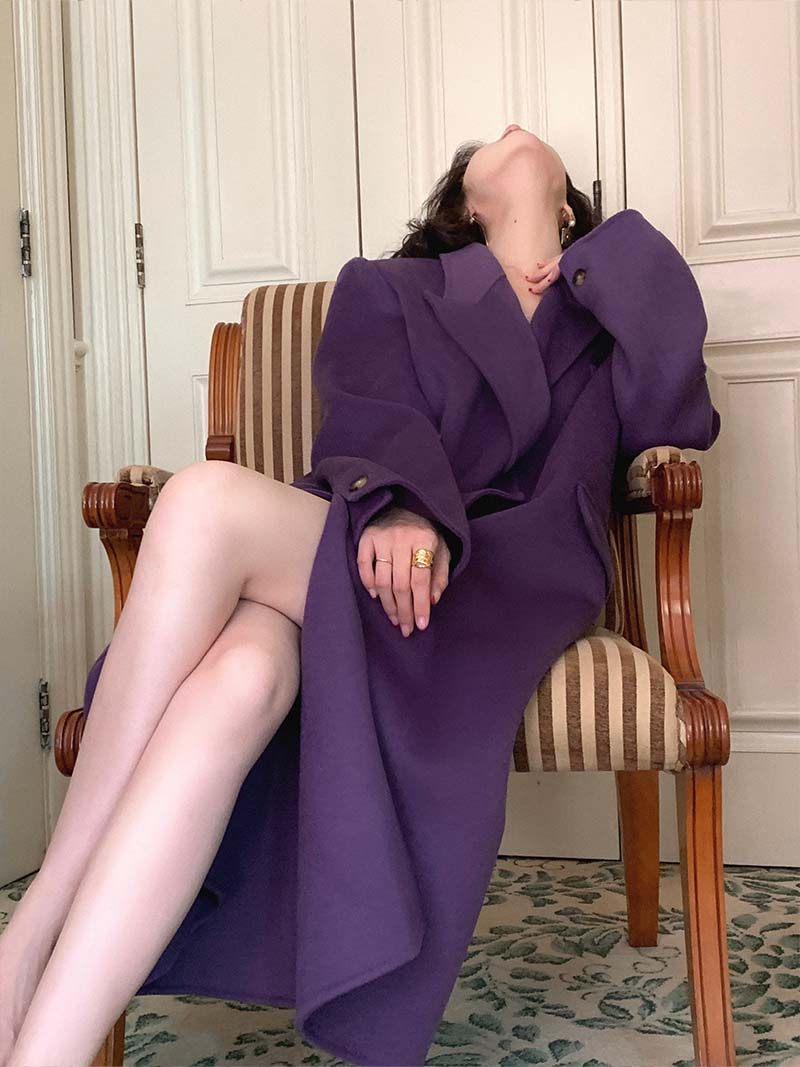 酒午港风复古100%羊毛双面呢大衣气质宽松显瘦廓形感毛呢外套秋冬
