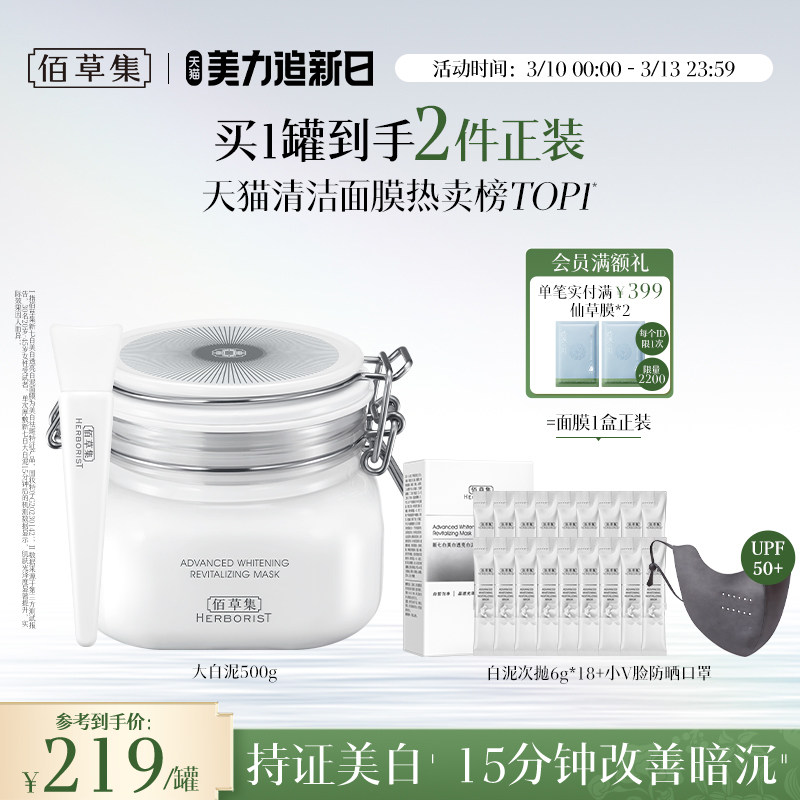 【3.0版】佰草集新七白大白泥美白特证祛斑去黄涂抹面膜清洁泥膜