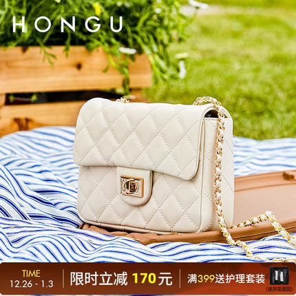 HONGU红谷新款小香风菱格链条包包女真皮单肩斜挎包百搭轻奢女包