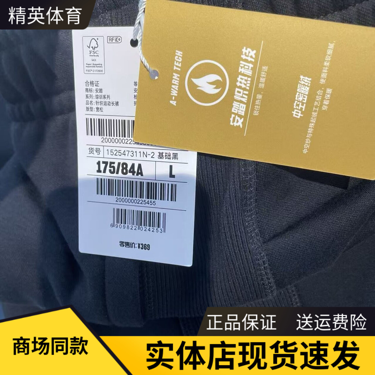 安踏美式休闲长裤男士冬季新款加绒保暖宽松直筒阔腿裤152547311N