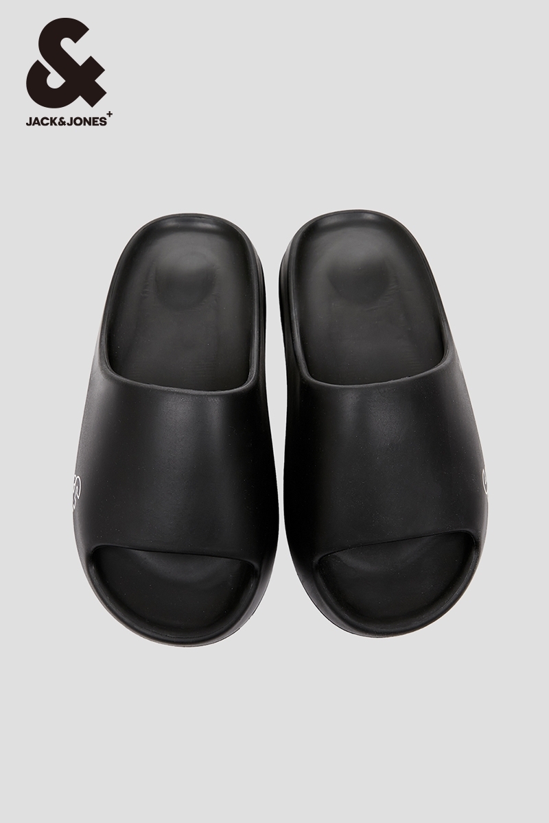 杰克琼斯夏季男士logo胶印简约外穿室内凉拖鞋黑色厚底凉拖男装