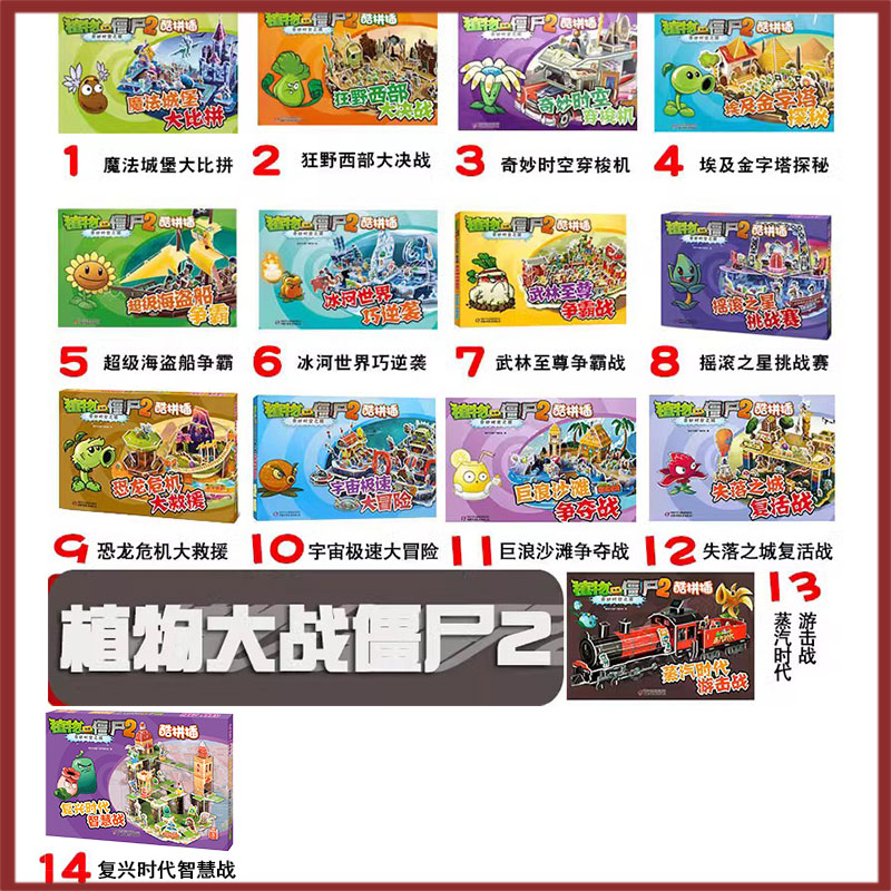 全套任选植物大战僵尸2酷拼插全套14册下单备注 手工益智拼装拼插拼图玩具套装游戏书 3-5-6岁幼儿童智力开发立体拼图正版畅销书籍