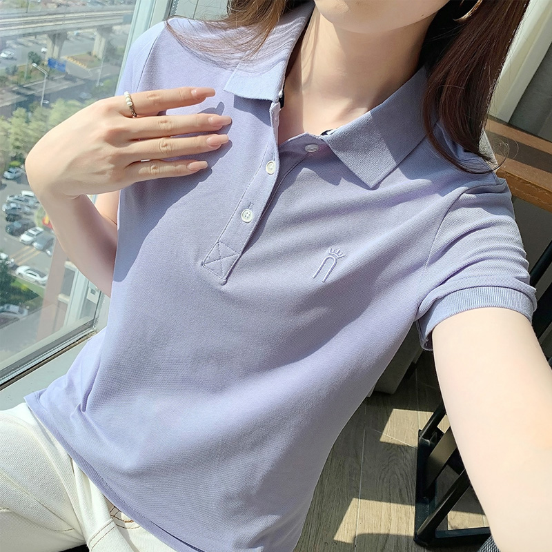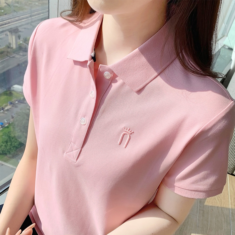 有领短袖t恤女2025夏季新款 翻领LOGO定制工作服女polo衫纯棉上衣