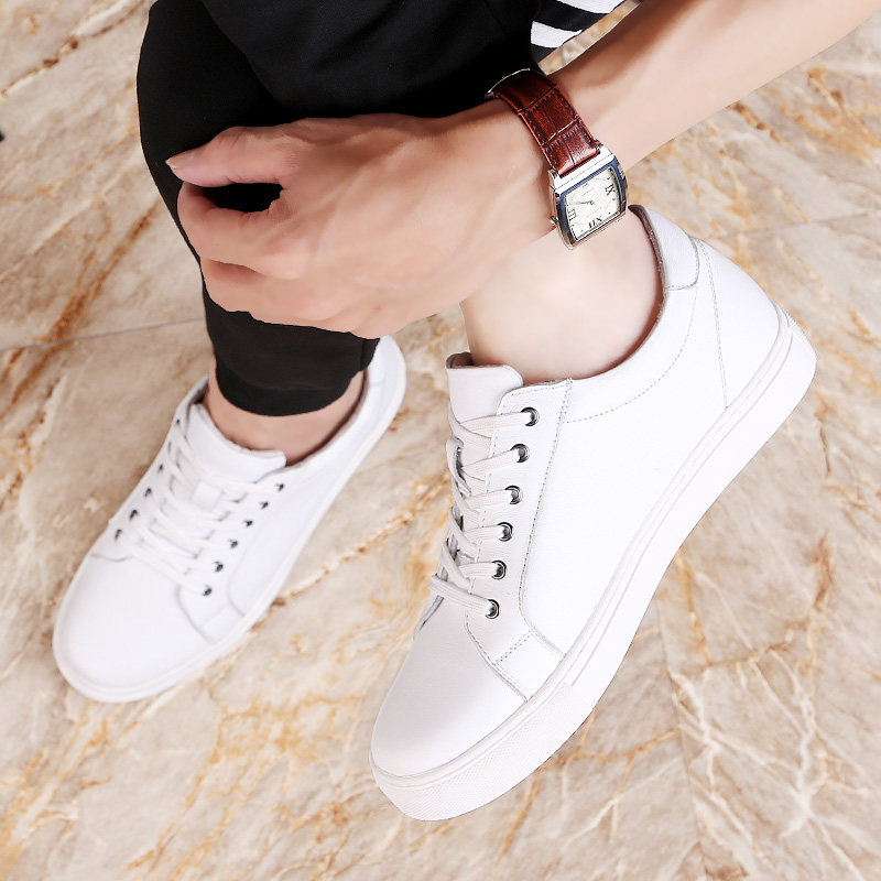 内增高男鞋6cm休闲头层牛皮白鞋