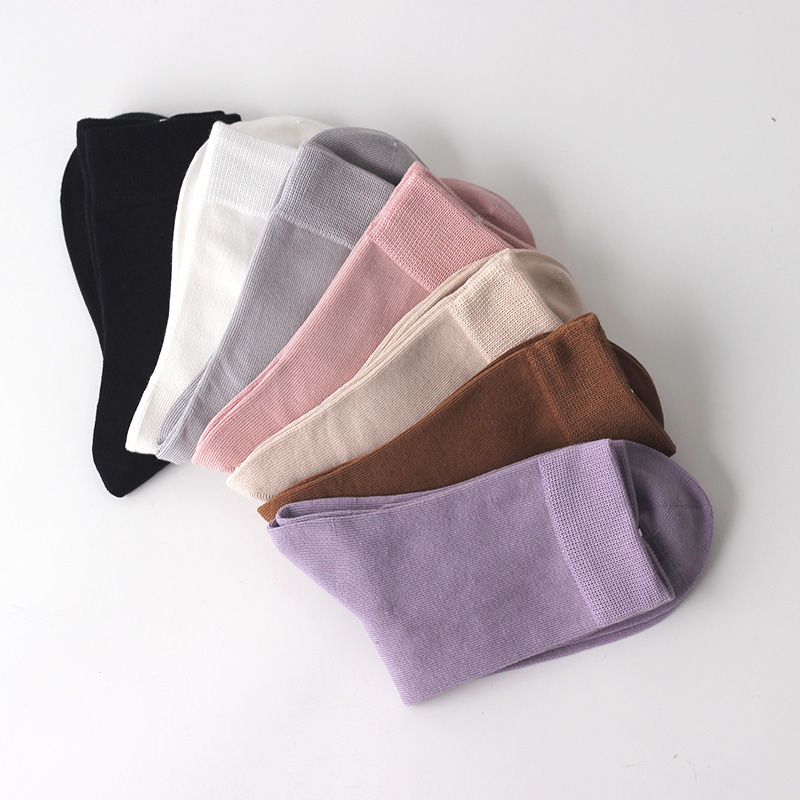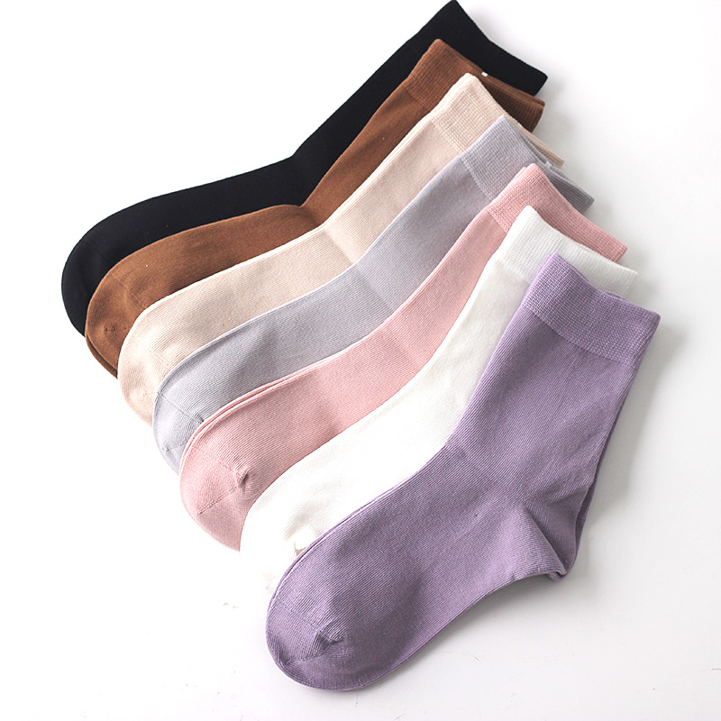女士纯棉无骨缝合春秋中筒袜子防臭不起球100%全棉纯色黑色白色