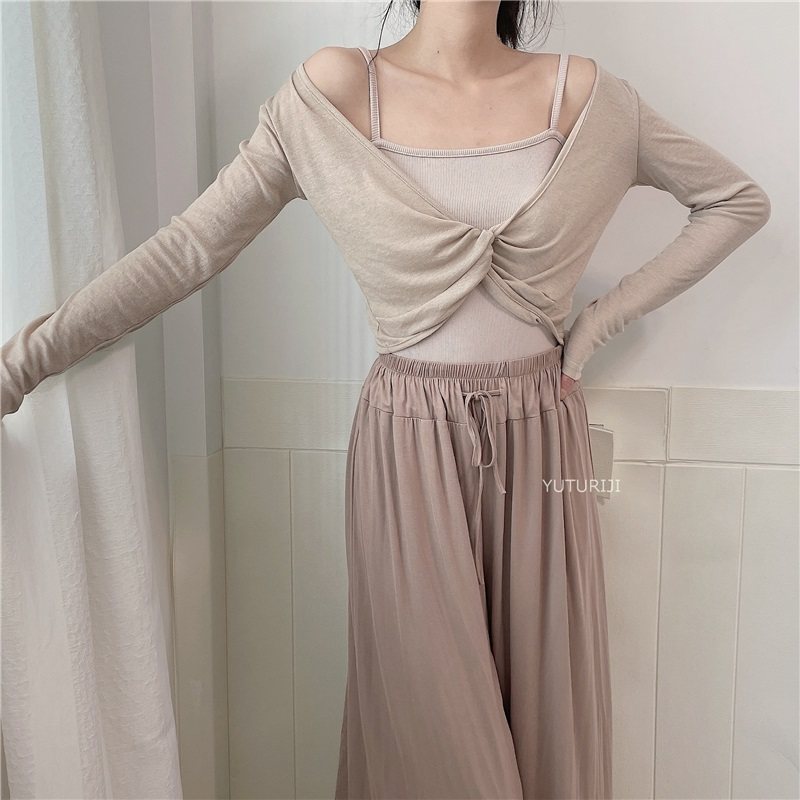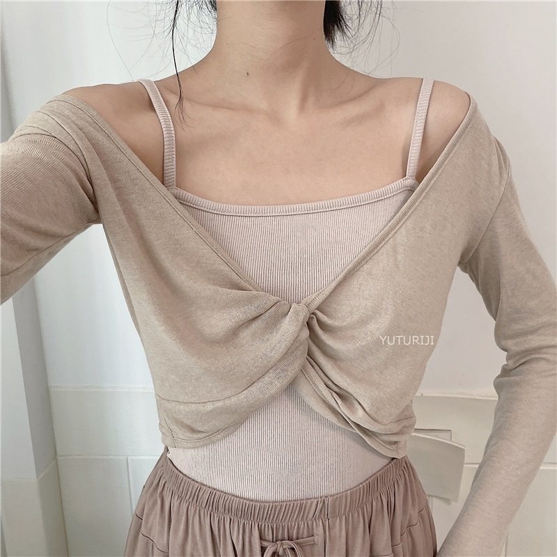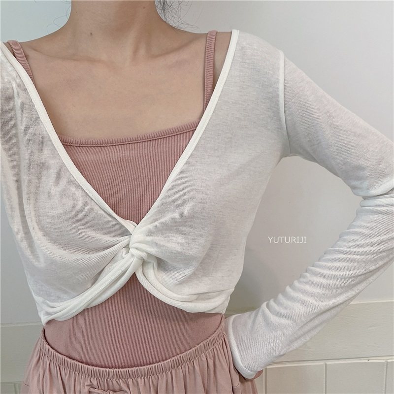 坎肩外搭罩衫夏季防晒衫短款打结披肩V领交叉上衣女罩衫t恤外套薄