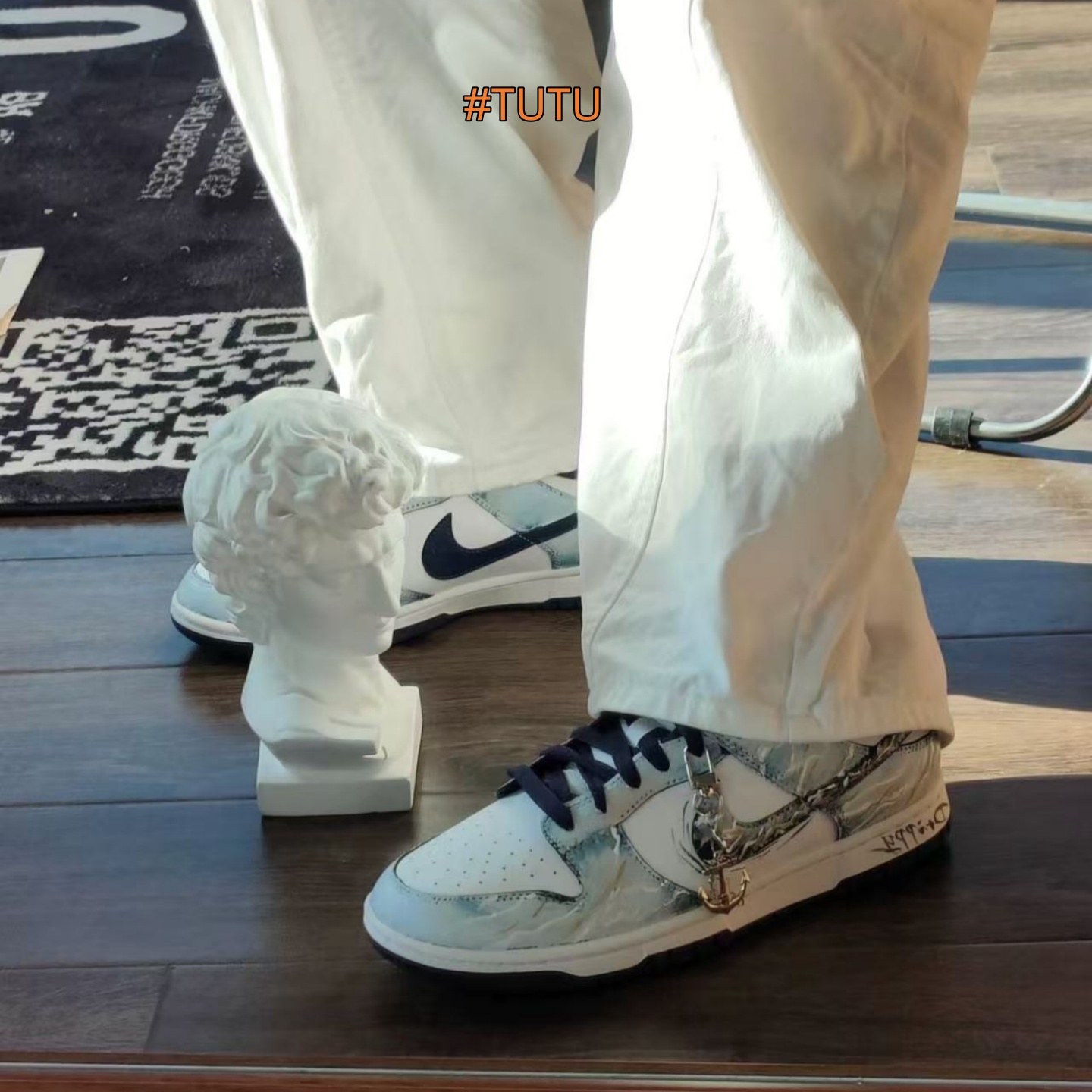 球鞋定制 Nike Dunk 天京渡 泼墨晕染 手绘 男子蓝白低帮休闲板鞋
