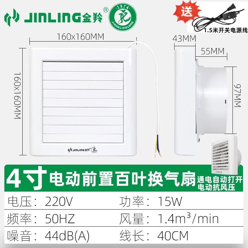 金羚排气扇电动式百叶家用卫生间静音换气扇强力排风扇橱窗4寸6寸