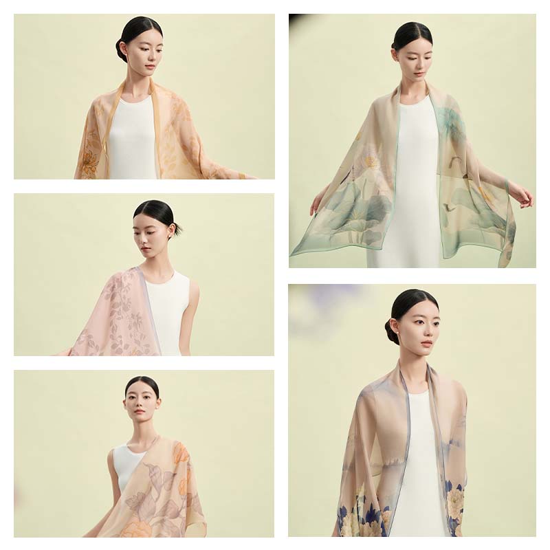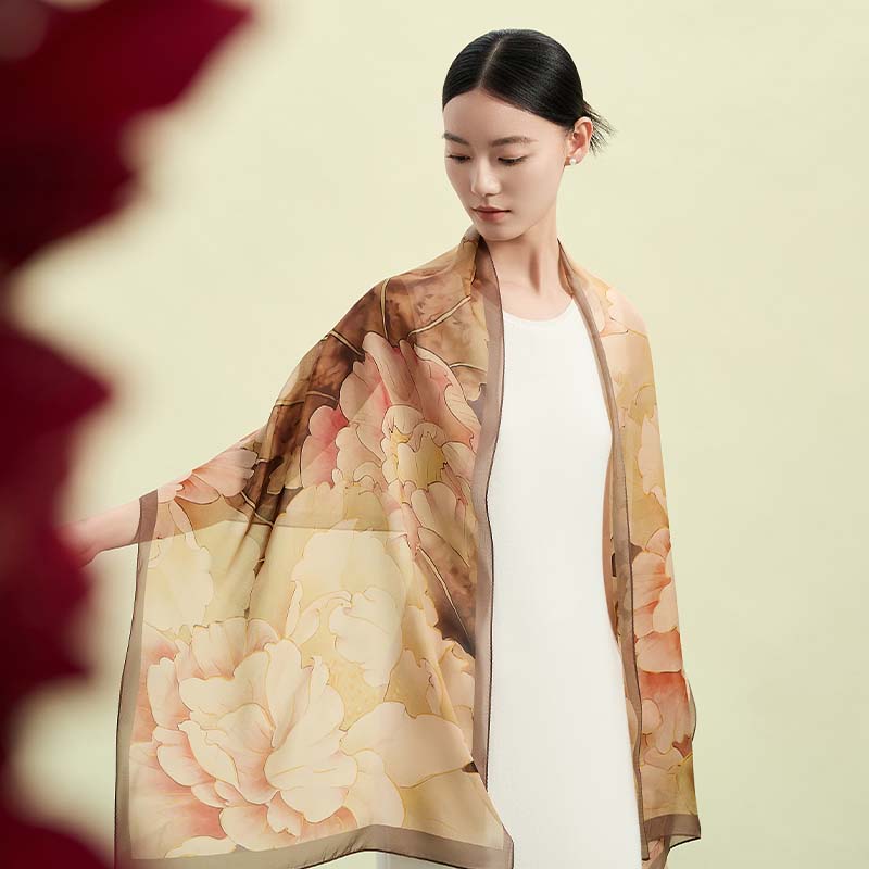 万事利真丝丝巾妈妈礼物100%桑蚕丝旅行纱巾披肩长巾头巾丝绸礼盒