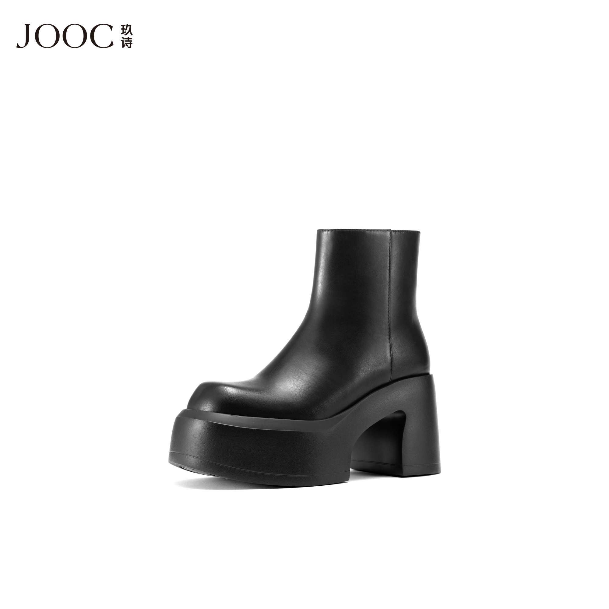 【城市漫游】JOOC玖诗短靴秋冬新款防水台粗高跟百搭时装厚底女靴