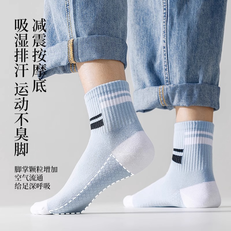 袜子男春秋季吸汗透气短袜男士纯棉防臭抑菌中筒袜青少年运动棉袜