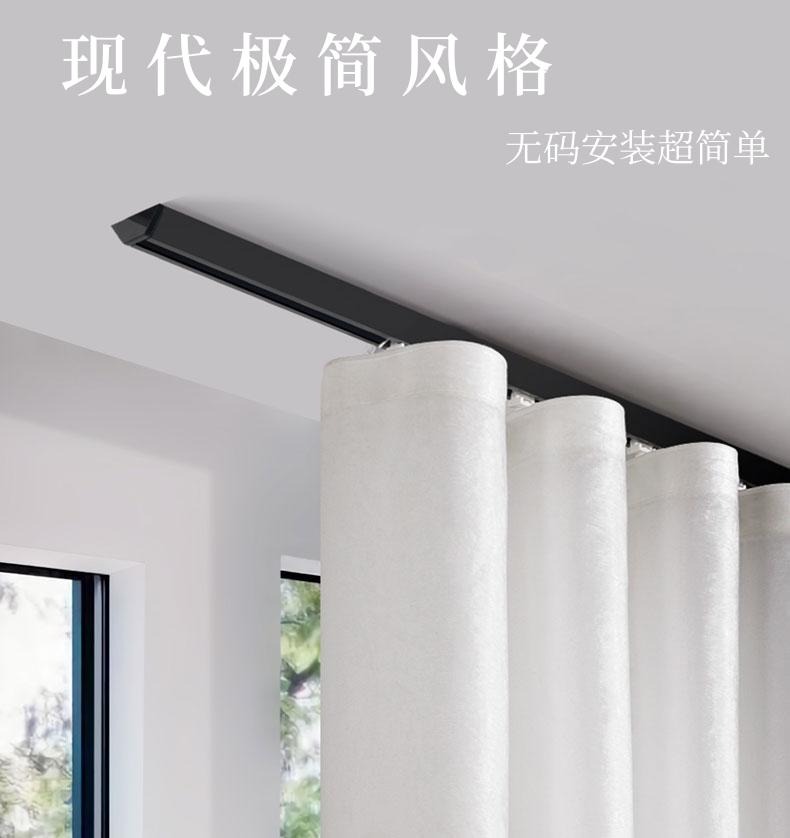 坚美V型超薄窗帘轨道顶侧装免打孔静音滑轨隐形轨道铝合金单双轨