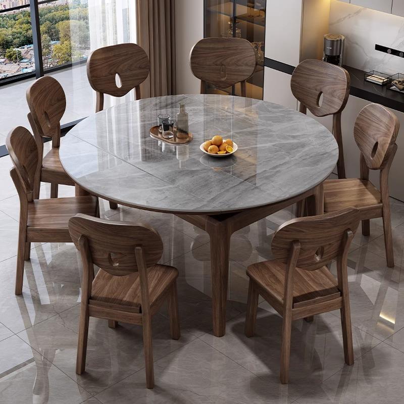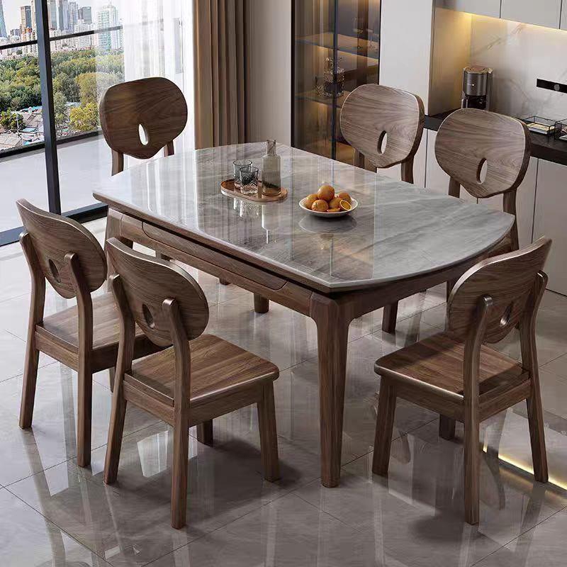 北美胡桃实木岩板餐桌椅组合伸缩现代折叠简约饭桌家用方圆小户型