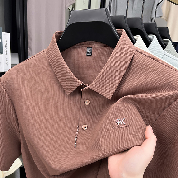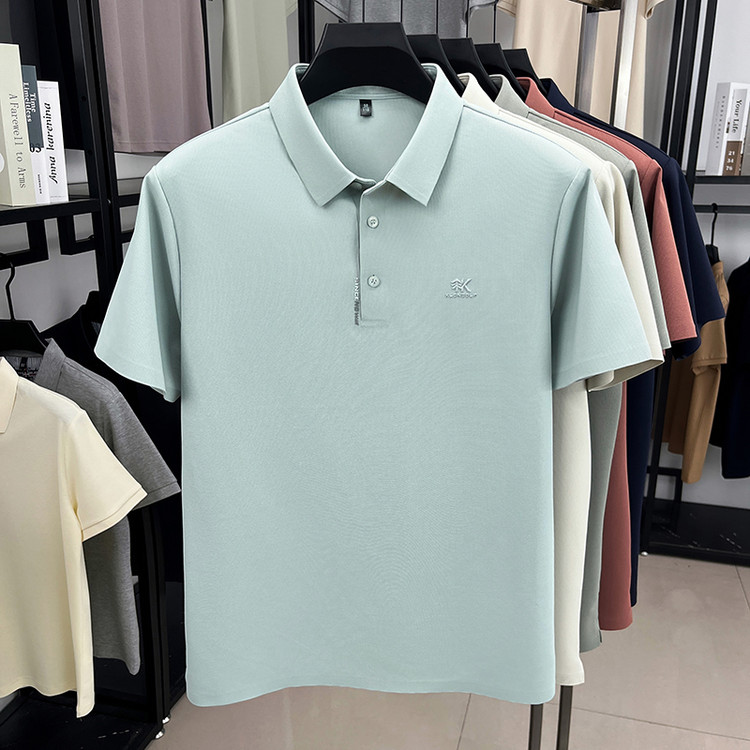 2025夏季新款冰丝凉感短袖T恤男烫印宽松高端商务休闲男士polo衫