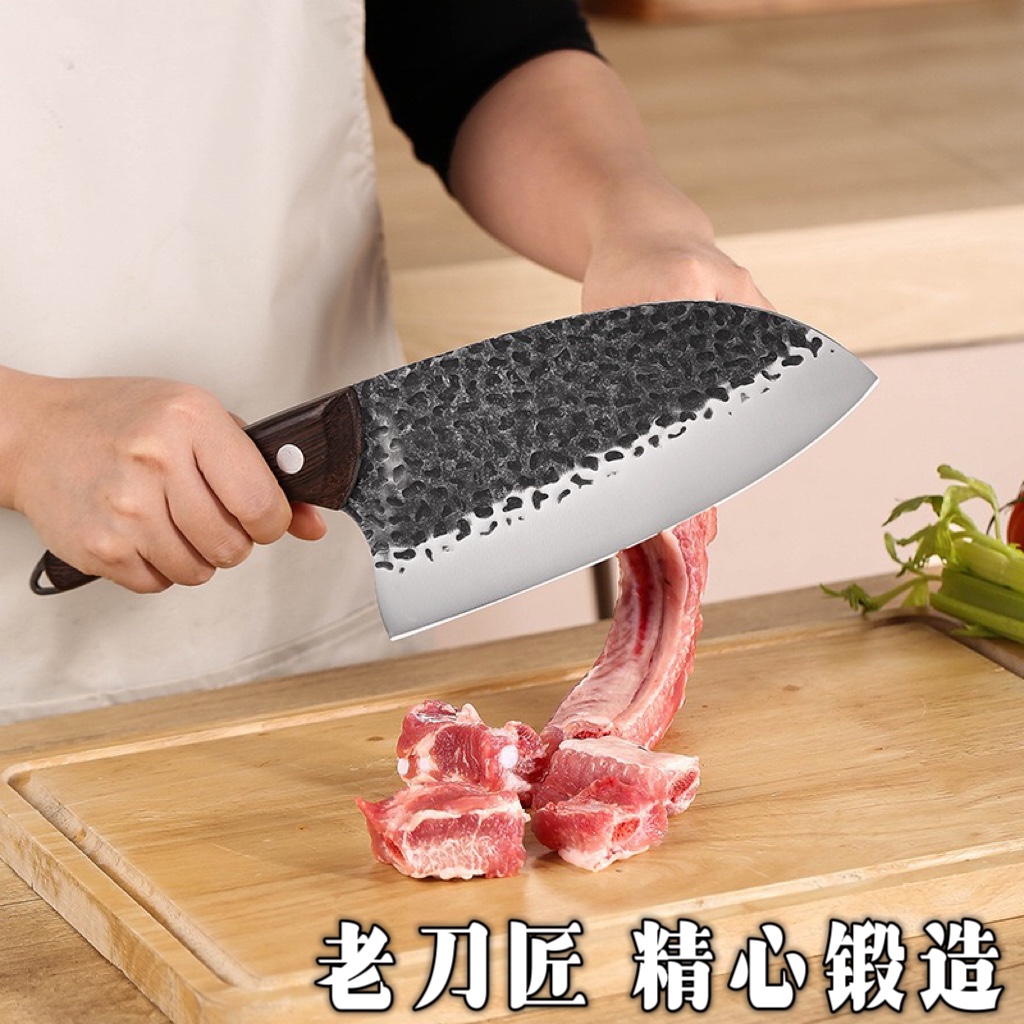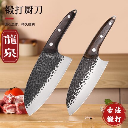 龙泉菜刀家用古法手工锻打斩切两用刀厨房拍蒜切菜切肉斩骨头套装
