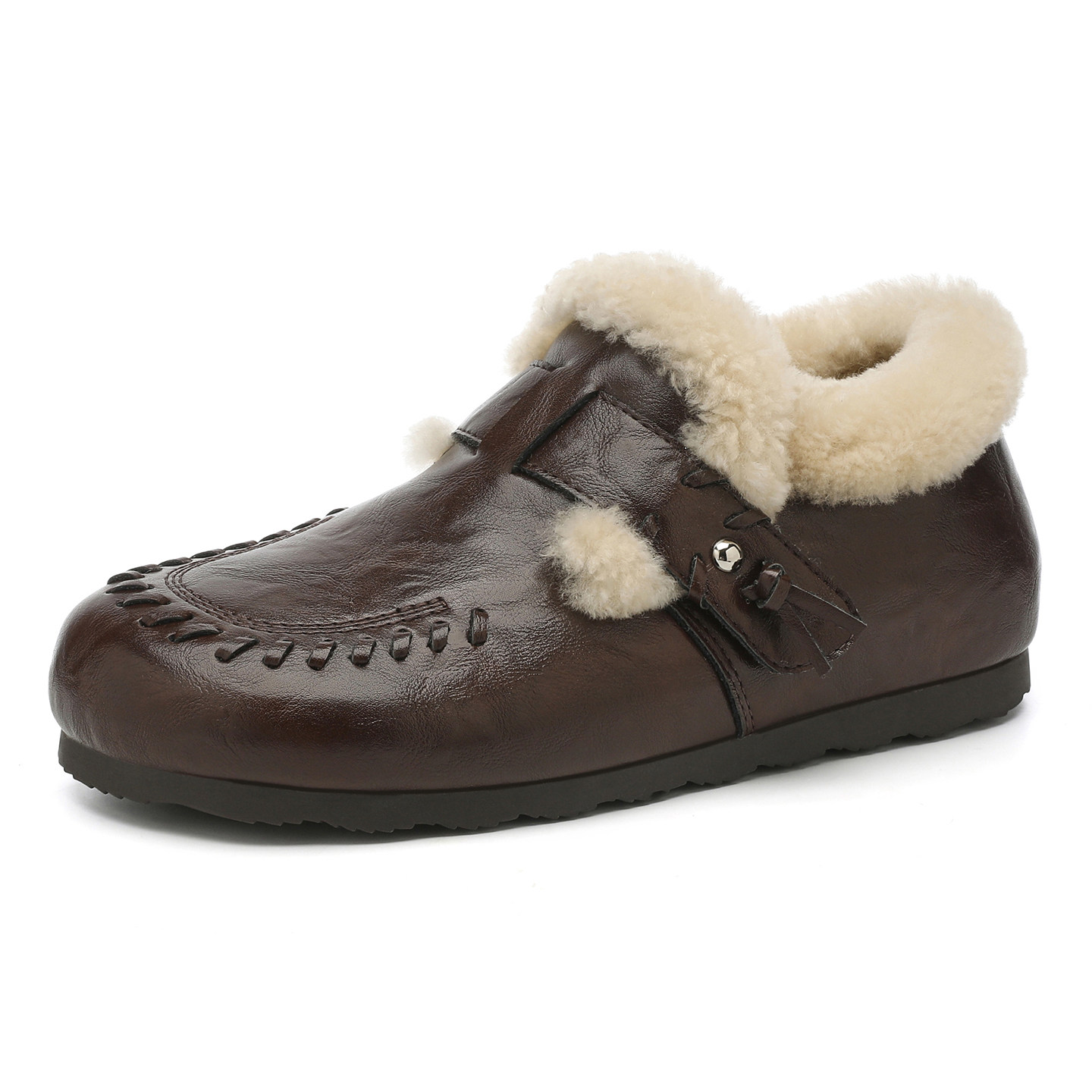MILLIE'S/妙丽2025新款加绒保暖毛毛乐福鞋皮带扣休闲板鞋一脚蹬