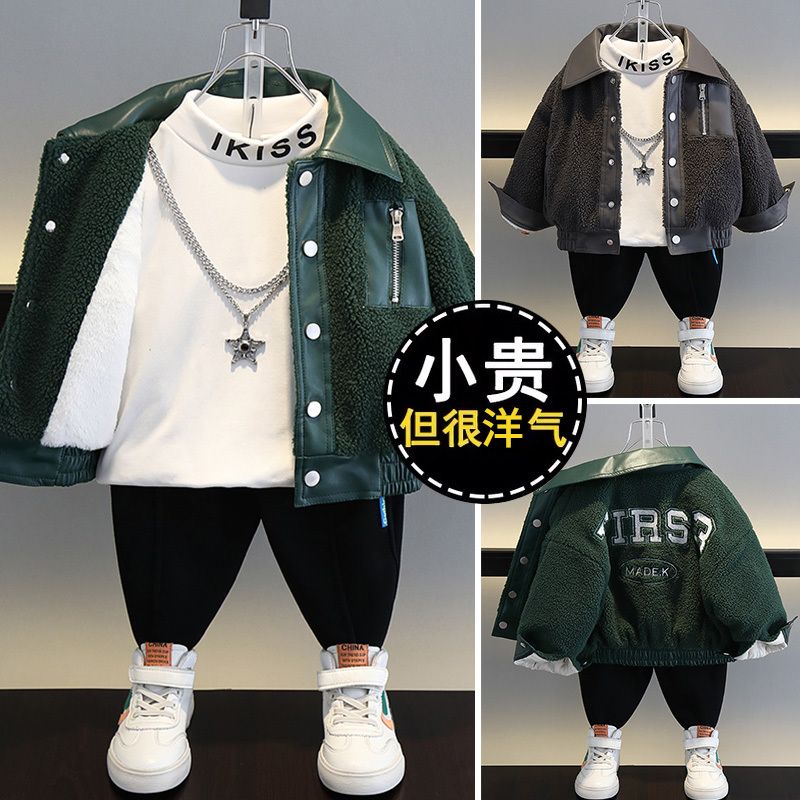 男童加绒外套2024新款宝宝冬装棉袄衣服儿童冬季棉衣夹棉加厚棉服