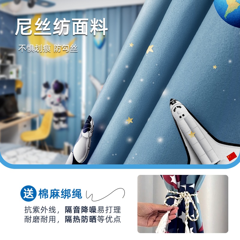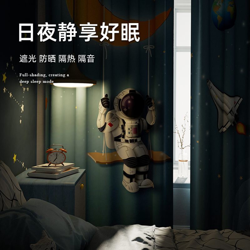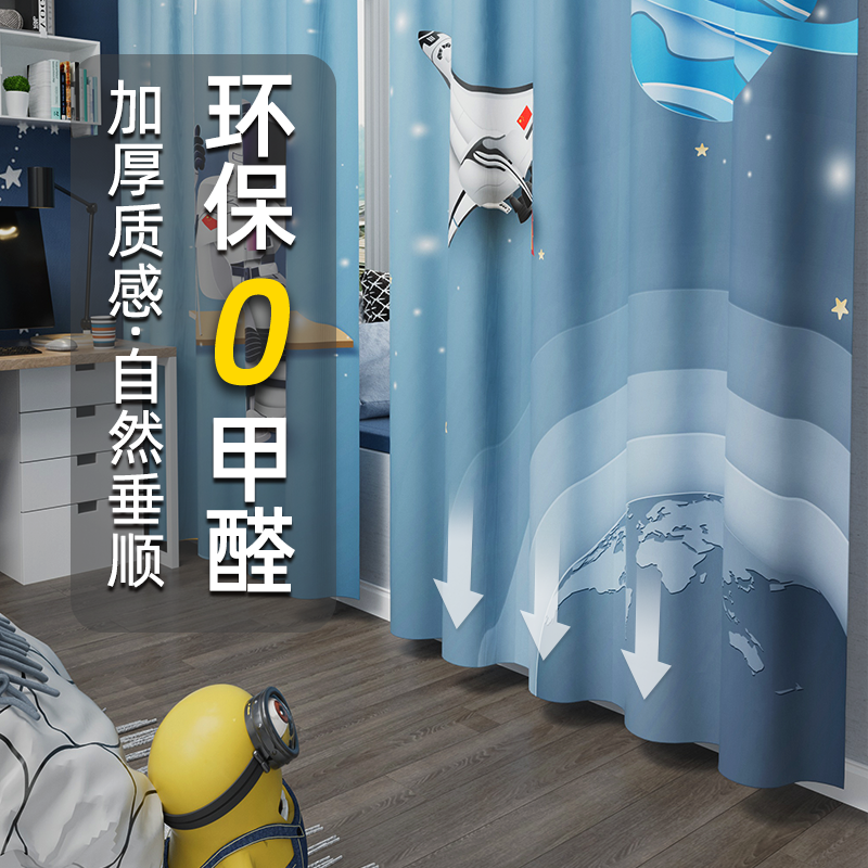 男孩卧室儿童窗帘太空卡通儿童房飘窗男童房间挂钩遮阳布遮光窗帘