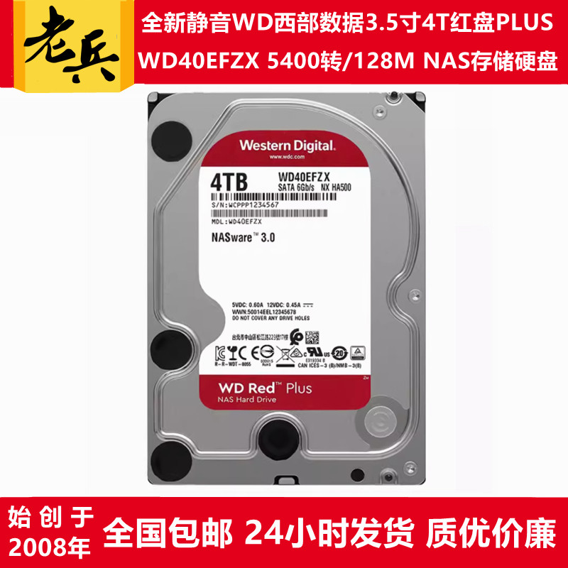 3.5寸4T硬盘WD西部数据红盘PLUS/WD40EFAX/PX/ZX/RX服务器NAS存储