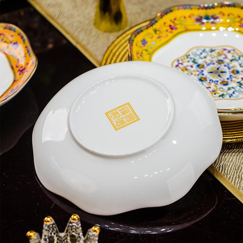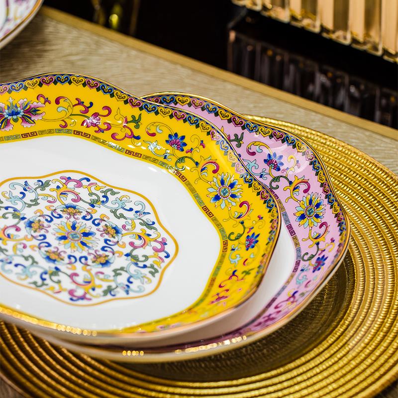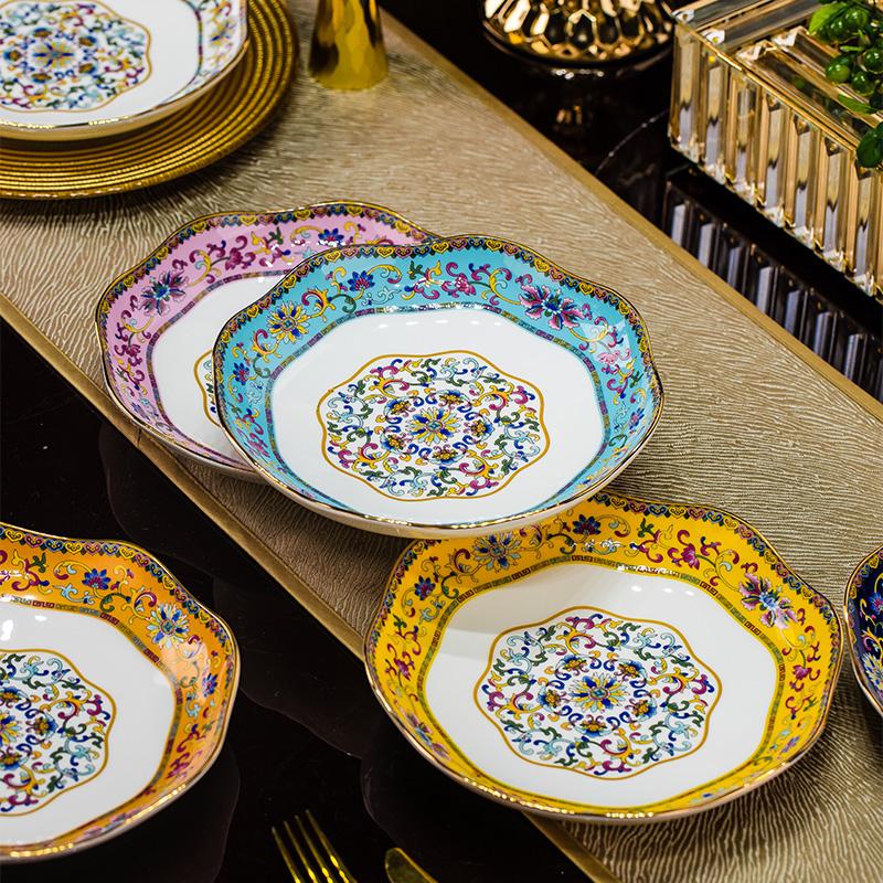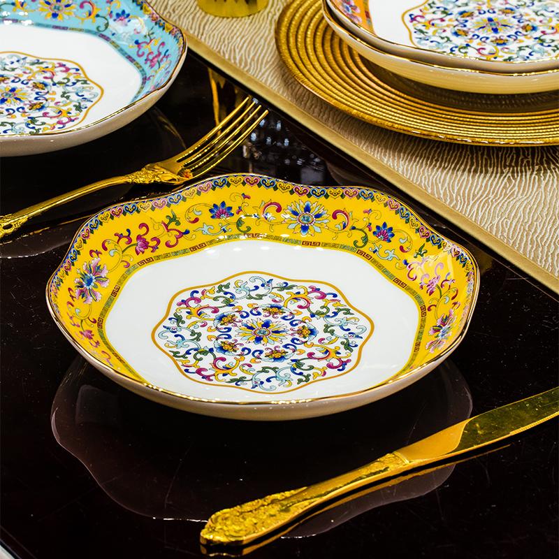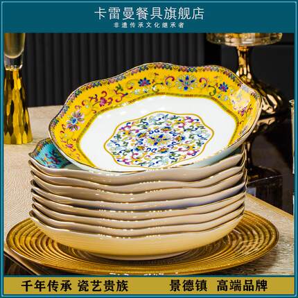 景德镇中式8英寸家用花口盘菜盘珐琅彩骨瓷装菜盘子酒店陶瓷果盘