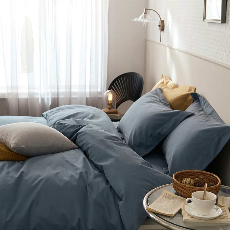 100支秋冬全棉纯棉磨毛四件套床上用品 1.8m床单床笠纯色简约被套
