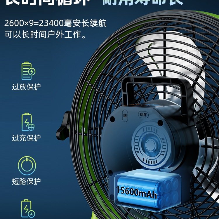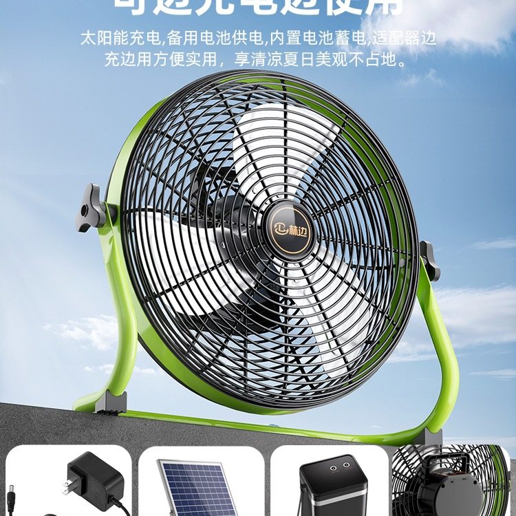 包邮林边户外防水太阳能风扇家用大风力便携式露营工业趴地可充电