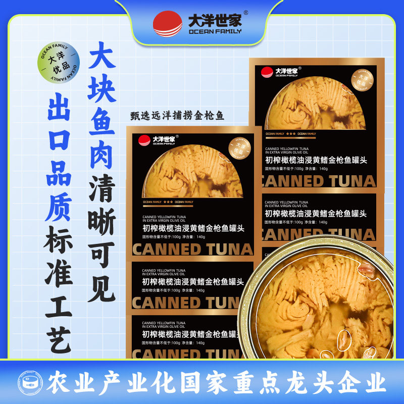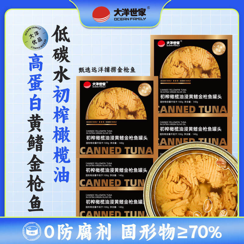大洋世家 初榨橄榄油油浸黄鳍金枪鱼罐头吞拿鱼寿司海鲜鱼肉沙拉