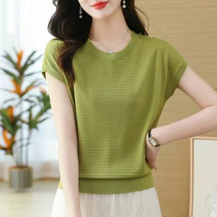 妈妈夏装女士t恤短袖新款洋气高档冰丝上衣女宽松薄款针织衫纯色