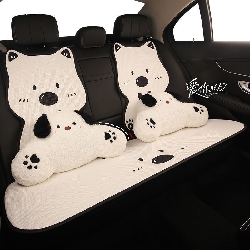 汽车坐垫通用四季夏季冰丝高级感2025新款车内可爱小狗后排座椅套