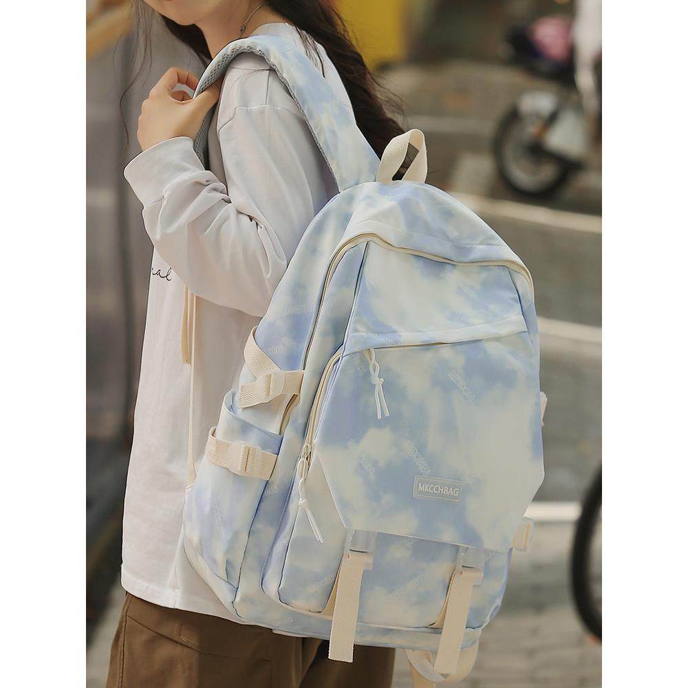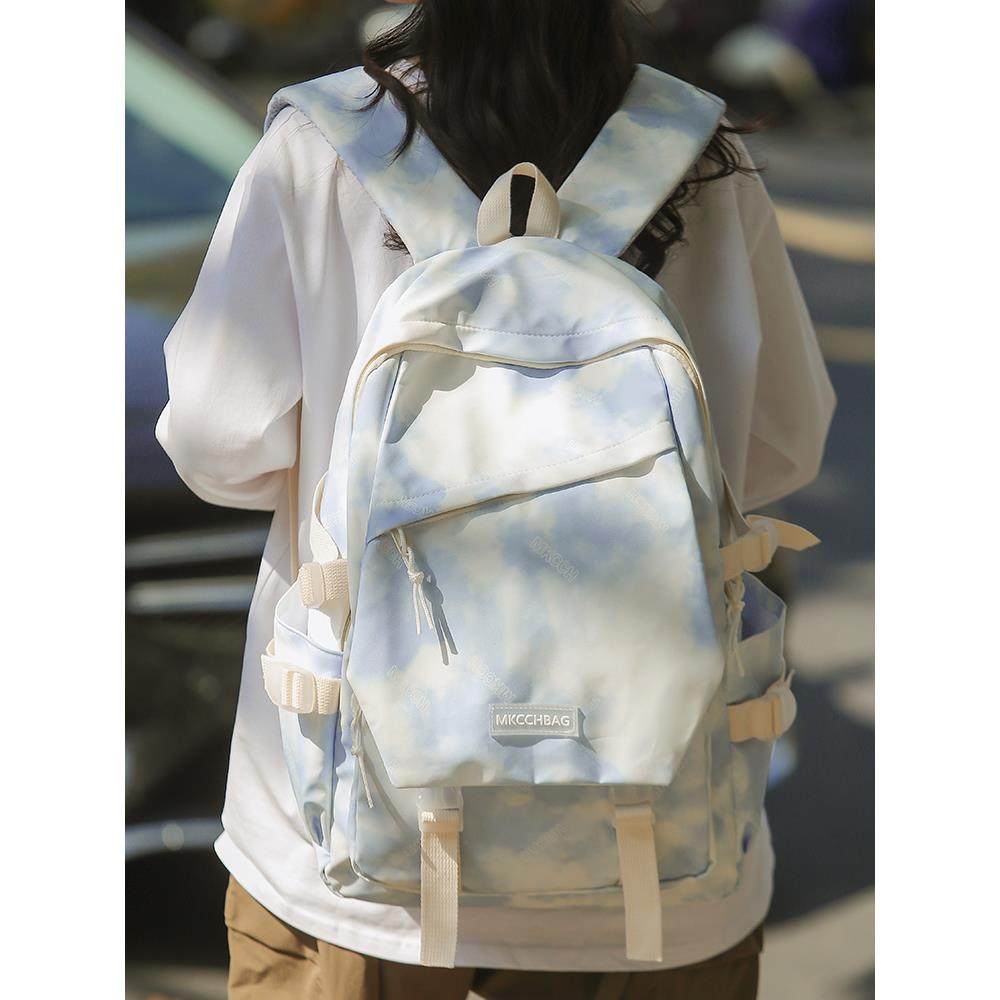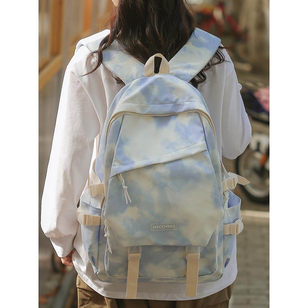 新款小众设计扎染书包女初中生轻便双肩包大学生休闲旅行印花背包