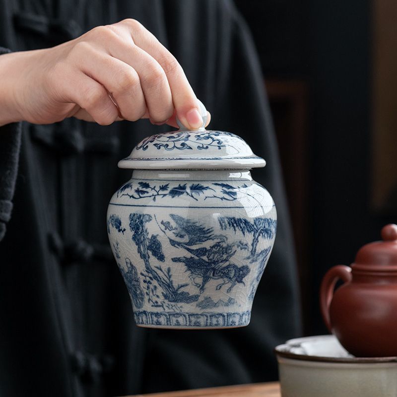 茶叶罐陶瓷复古老陶泥陶瓷罐收纳罐防潮储茶罐小号密封罐将军罐
